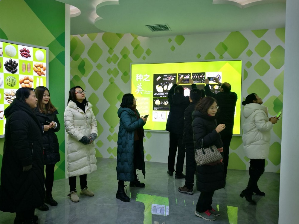 在讲解员的带领下,老师们先后参观了肃州种业大数据中心和肃州种业智慧展示中心。展馆分A、B两厅,A厅从世界种业格局着眼,讲述大国种业、甘肃种业发展,大数据中心体现智慧科技对现代种业发展的推动作用;B厅聚焦肃州种业,描述产业风貌,展示酒泉古道新路,融入科技创新,传播坚韧不拔、生生不息的种业精神。