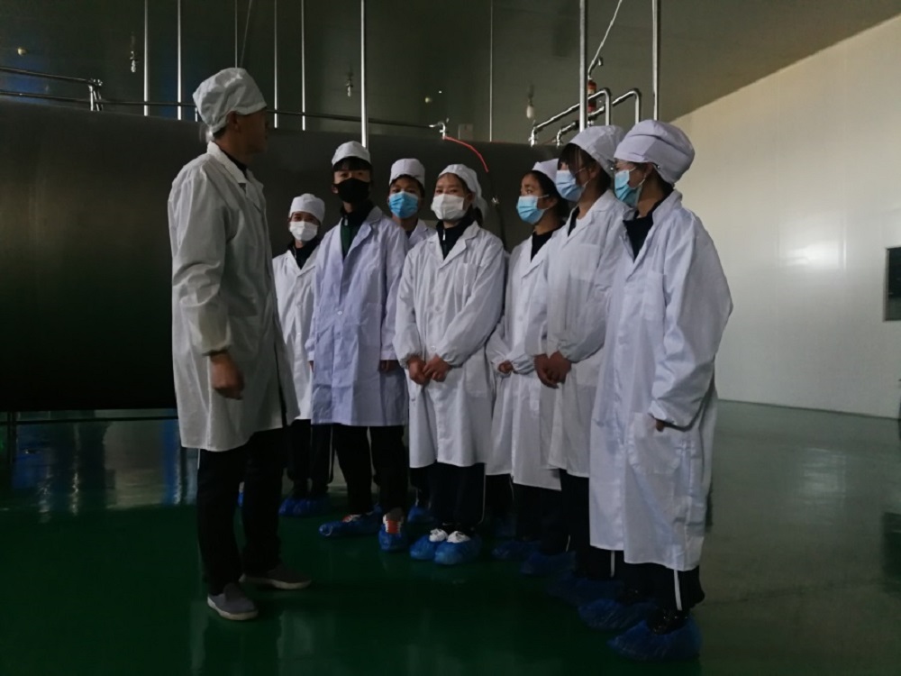 在公司生产部长的引领下和讲解下,同学们就药品固体剂生产车间、注射剂生产车间、生化制药车间等生产流程进行了观摩和认知,并就生产及未来发展前景方面的问题进行了咨询和交流。