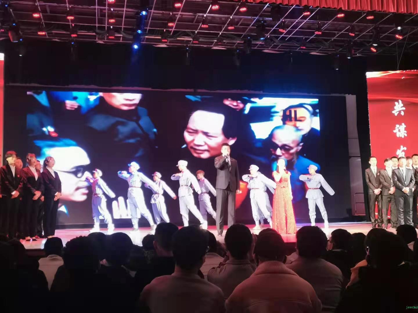 晚会分为继往开来、青春筑梦、走向复兴三个篇章。演出以《红色记忆》拉开序幕,将敬爱的毛主席、南泥湾、北京的金山上等红歌以小合唱形式演奏,达到了红色教育的目的。《军民鱼水情》、《烛光里的妈妈》以舞蹈形式呈现,彰显母亲的伟大,达到了感恩教育的目的。《少多哩的青春》《致青春》《青春魅影》等节目呈现了土木学子在校园的靓丽身影,《最美工程人》以诗朗诵的形式呈现了同学们在学习、工作、生活中不畏艰辛、艰苦奋斗的敬业精神。最后,由土木工程学院师生和甘肃飞翔建设集团有限公司职工合唱的《复兴的力量》将迎新年晚会推向了高潮。