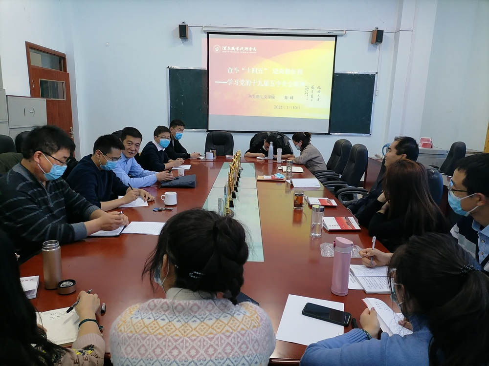 最后,支部书记范玉敏做总结讲话,范玉敏同志指出,在2021年我院工作全面展开之际,我们请聂峰书记给我们讲这堂专题党课,对十九届五中全会精神再次进行更加深入的学习,全体同志要在党的十九届五中全会精神指引下,准确把握学院下一步发展任务和工作重点,及时调整工作思路,转变工作方法,运用好转化好全会精神学习成果,切实把全会精神贯彻落实到学院各项工作中去,全面落实立德树人根本任务,推动我院持续向好发展。