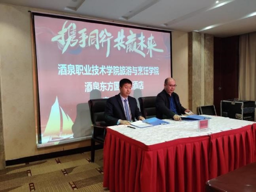 2021年4月2日,旅游与烹饪学院和酒泉东方国际大酒店有限责任公司在东方国际大酒店六层会议厅举行“4+1+2”校企合作签约仪式。