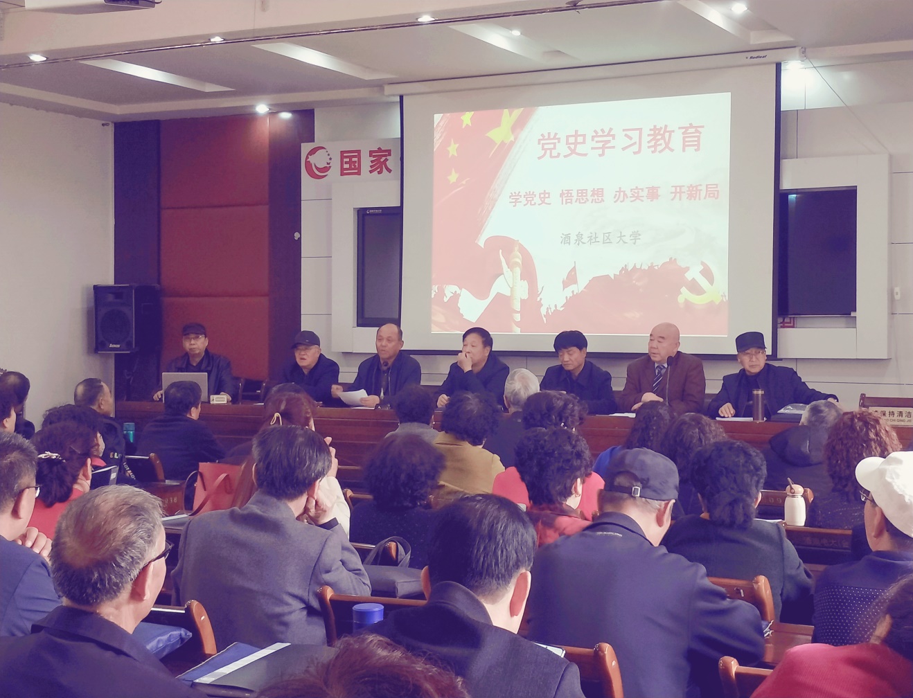 为深入学习贯彻习近平新时代中国特色社会主义思想,巩固深化“不忘初心、牢记使命”主题教育成果,酒泉社区大学结合社区教育工作实际,按照用党史学习教育增信引航,用党史学习教育凝心聚力,用党史学习教育推进工作的思路,4月9日,酒泉社区大学在继续教育学院一楼会议室开展了“学党史、强信念、跟党走”为主题党史学习教育活动。