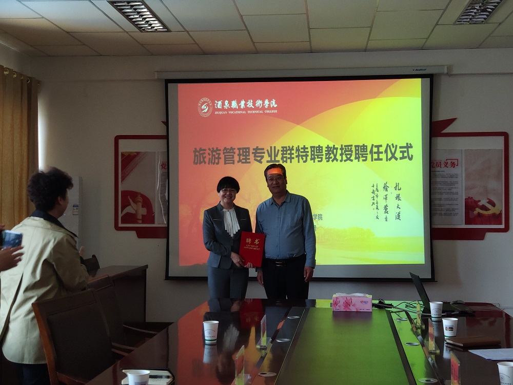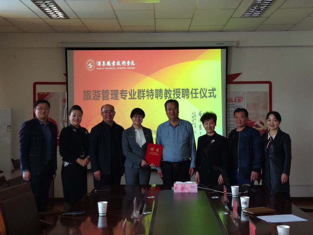 2021年4月14日,酒泉职业技术学院旅游管理专业群特聘教授聘任仪式在酒泉职业技术学院行知楼4楼会议室进行。