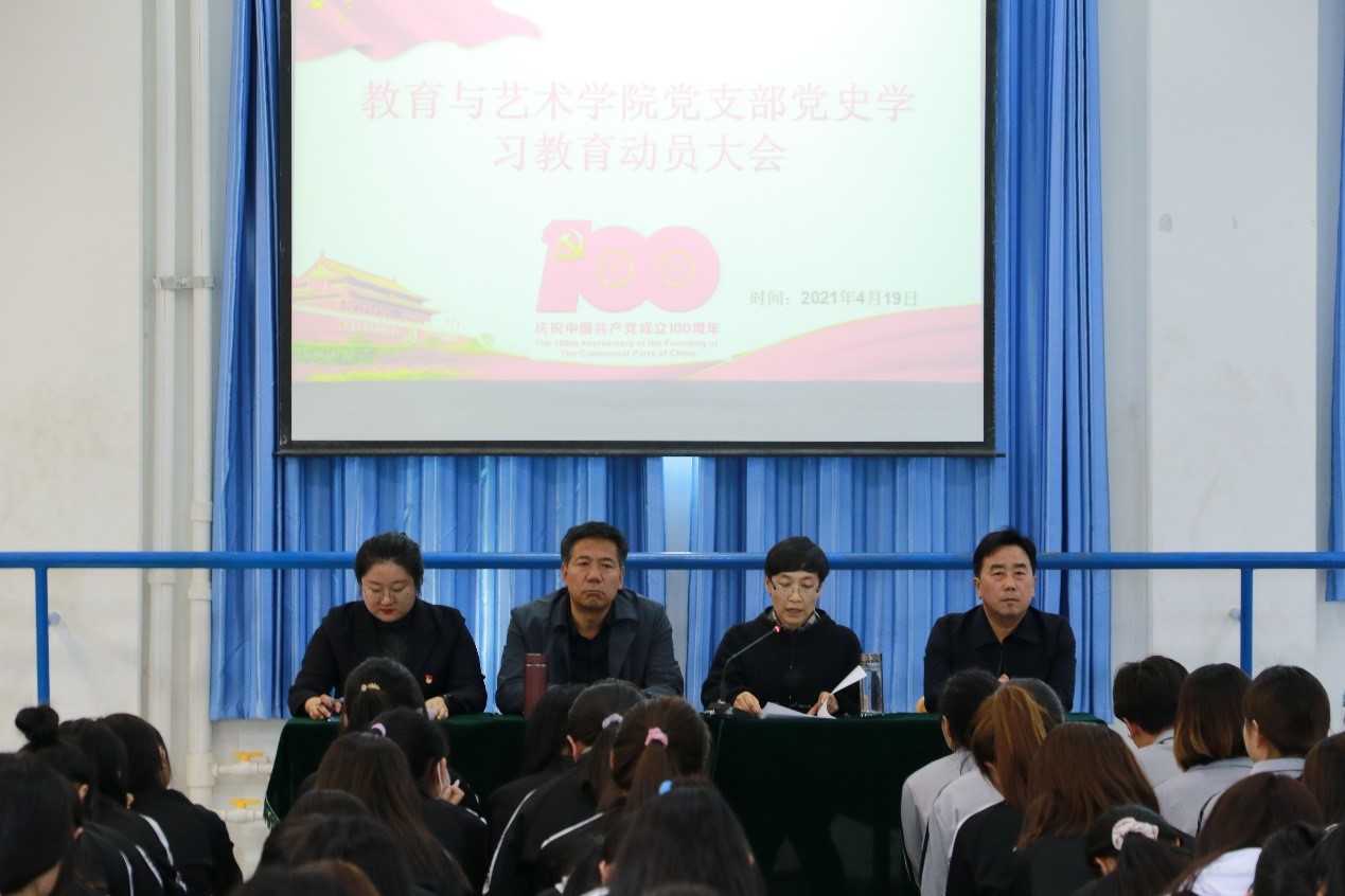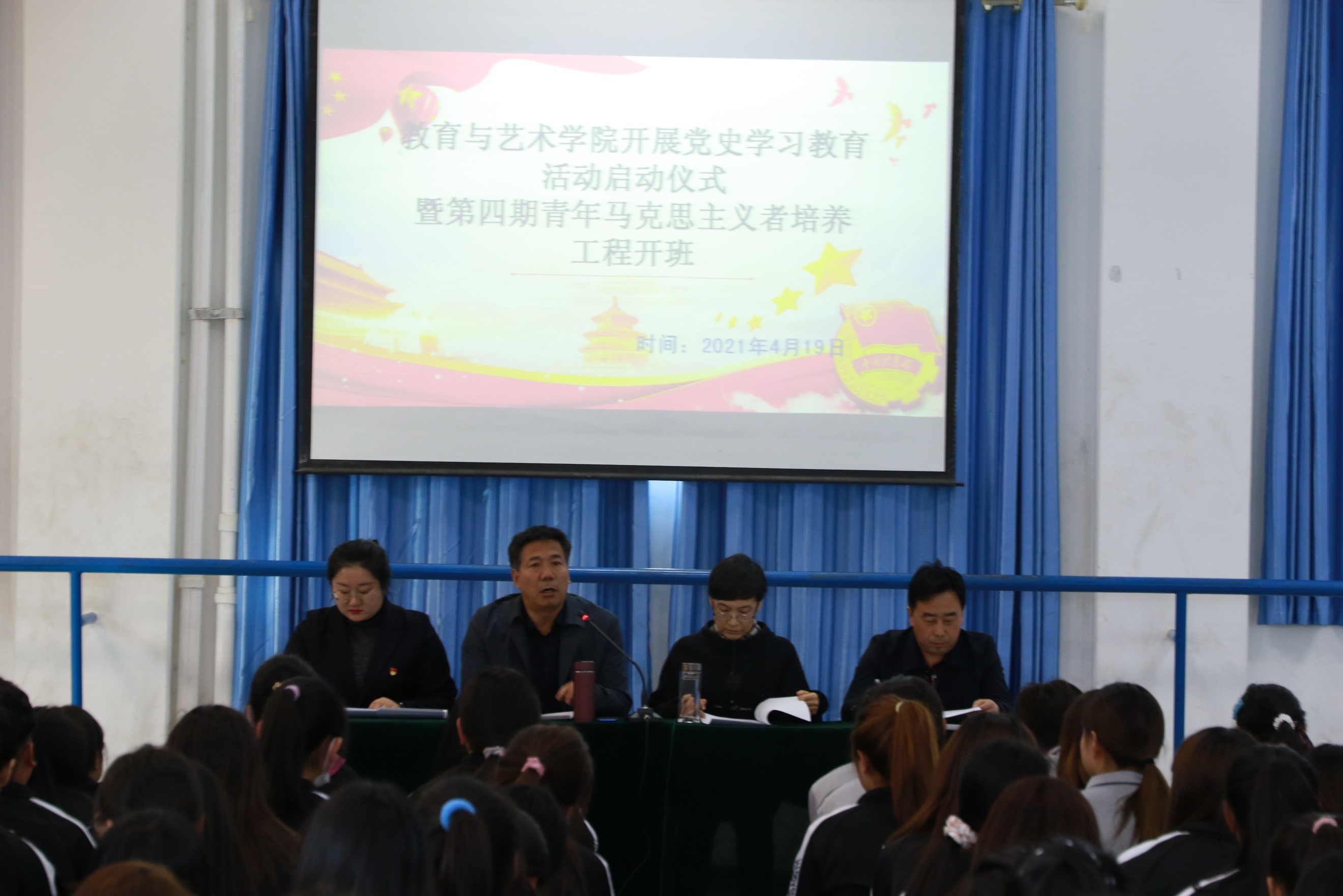 4月19日,教育与艺术学院组织召开党史学习教育动员大会暨第四期青年马克思主义者培养工程开班仪式,参加此次大会的有教育与艺术学院全体教职工和团学干部及部分学生代表。