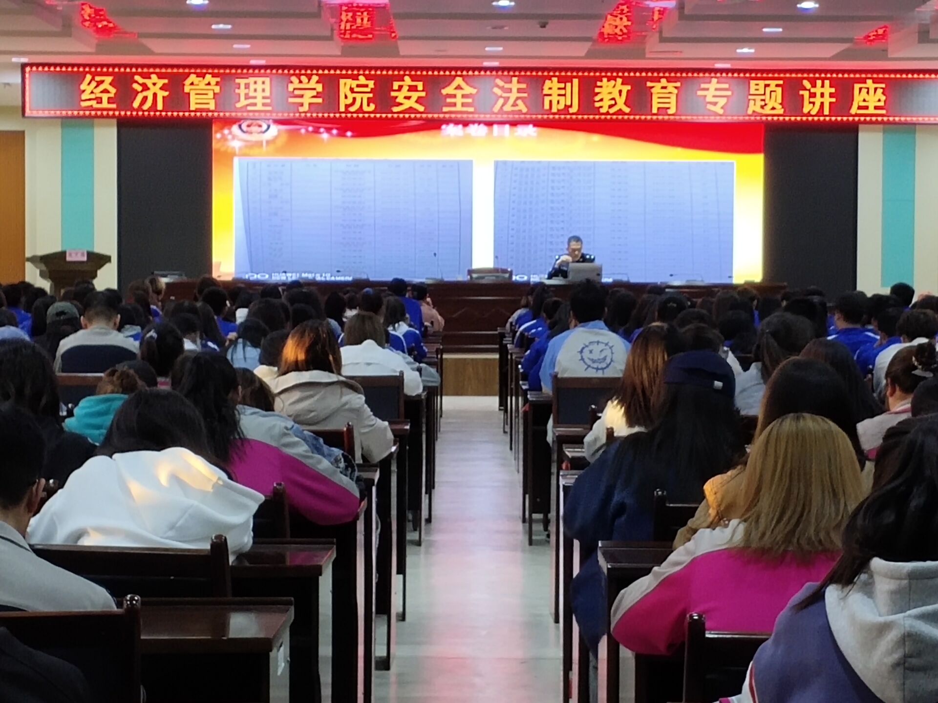 4月27日,经济管理学院特邀酒泉市火车站派出所武兴斌警官为在校全体学生和班主任做了“预防电信诈骗、法律知识、禁毒”的安全法制教育专题讲座,讲座由学院副院长杜静主持。