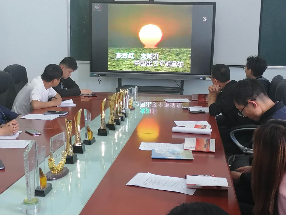 在徐海平副书记的讲解中,全体党员先后欣赏了《没有共产党就没有新中国》、《保卫黄河》、《义勇军进行曲》、《国际歌》、《东方红》、《在希望的田野上》、《春天的故事》、《歌唱祖国》、《我和我的祖国》等歌曲,带着大家的思绪从战火纷飞又心潮澎湃的革命年代,历经我们的祖国、我们的党一步步发展壮大的整个过程。