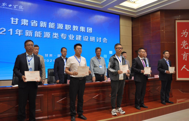 甘肃省新能源职教集团秘书长冯黎成宣读了教育部关于公布第一批示范性职业教育集团(联盟)培育单位名单的通知和甘肃省新能源职教集团关于“产教融合、校企合作”优秀案例评选的表彰决定,会议为“产教融合、校企合作”获奖优秀案例颁发证书,武威职业学院党委委员、副院长张开礼主持研讨会。