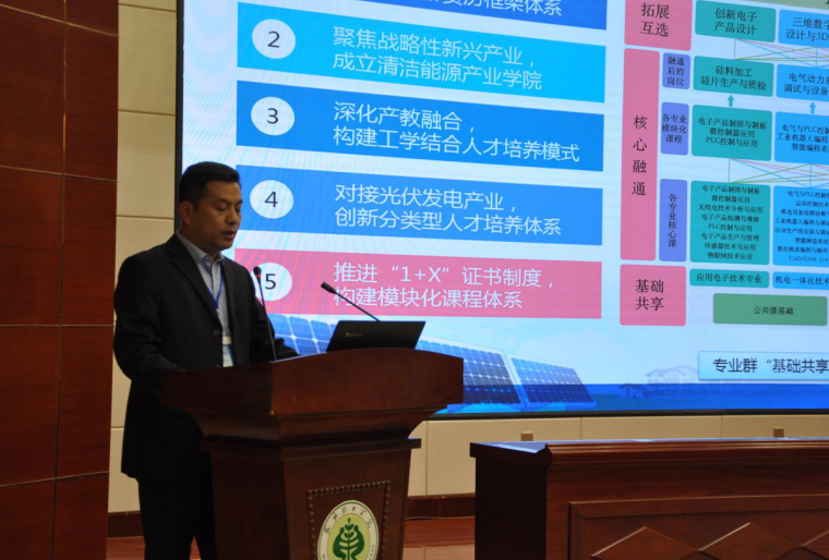 杭州瑞亚公司院校合作事业部总经理桑宁如做了光伏电站运维1+X证书制度政策解读,武威职业学院省级双高计划光伏工程技术高水平专业群负责人黄述杰汇报了专业群建设情况。