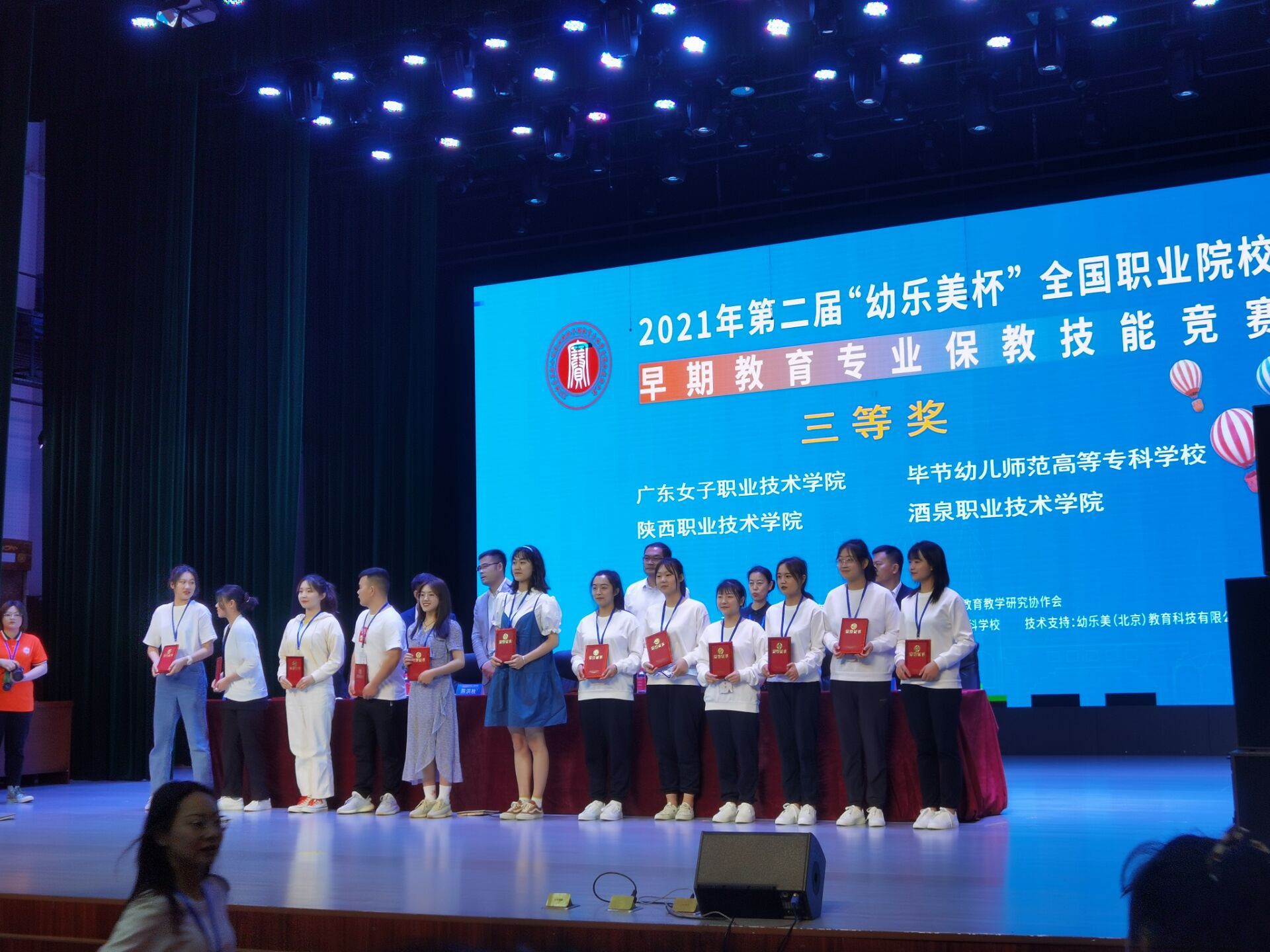 5月21日至23日,2021年“幼乐美杯”全国职业院校早期教育专业保教技能竞赛在山东济南举办。我院由于芳、李丽丽、袁霓老师辅导的颜娅、高凡、郭晓琴三位2020级早期教育专业学生取得了三等奖的好成绩!在此我们向取得优异成绩的同学和辛勤辅导的老师表示热烈祝贺!