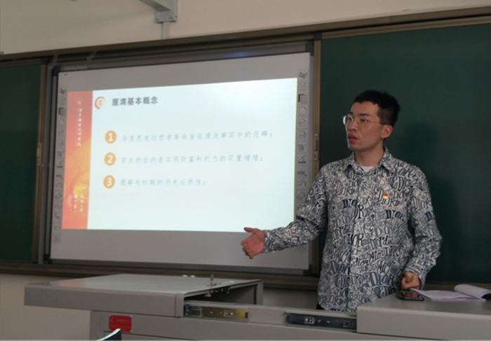 杨栋老师以《百年先进 中国共产党与马克思主义政治经济学》为主题,从“厘清基本概念”、“劳动过程和价值增殖过程的统一”、“资本主义生产关系逻辑上的非自洽性”、“打江山、守江山,守的是人民的心”等四个方面,向与会党员、教师阐释了中国共产党开创的新中国经济社会发展与马克思主义政治经济学一脉相承的辩证关系,进一步强化了大家对中国特色社会主义伟大事业的认识和理解,对习近平总书记提出的“江山就是人民、人民就是江山”的领悟和思考。