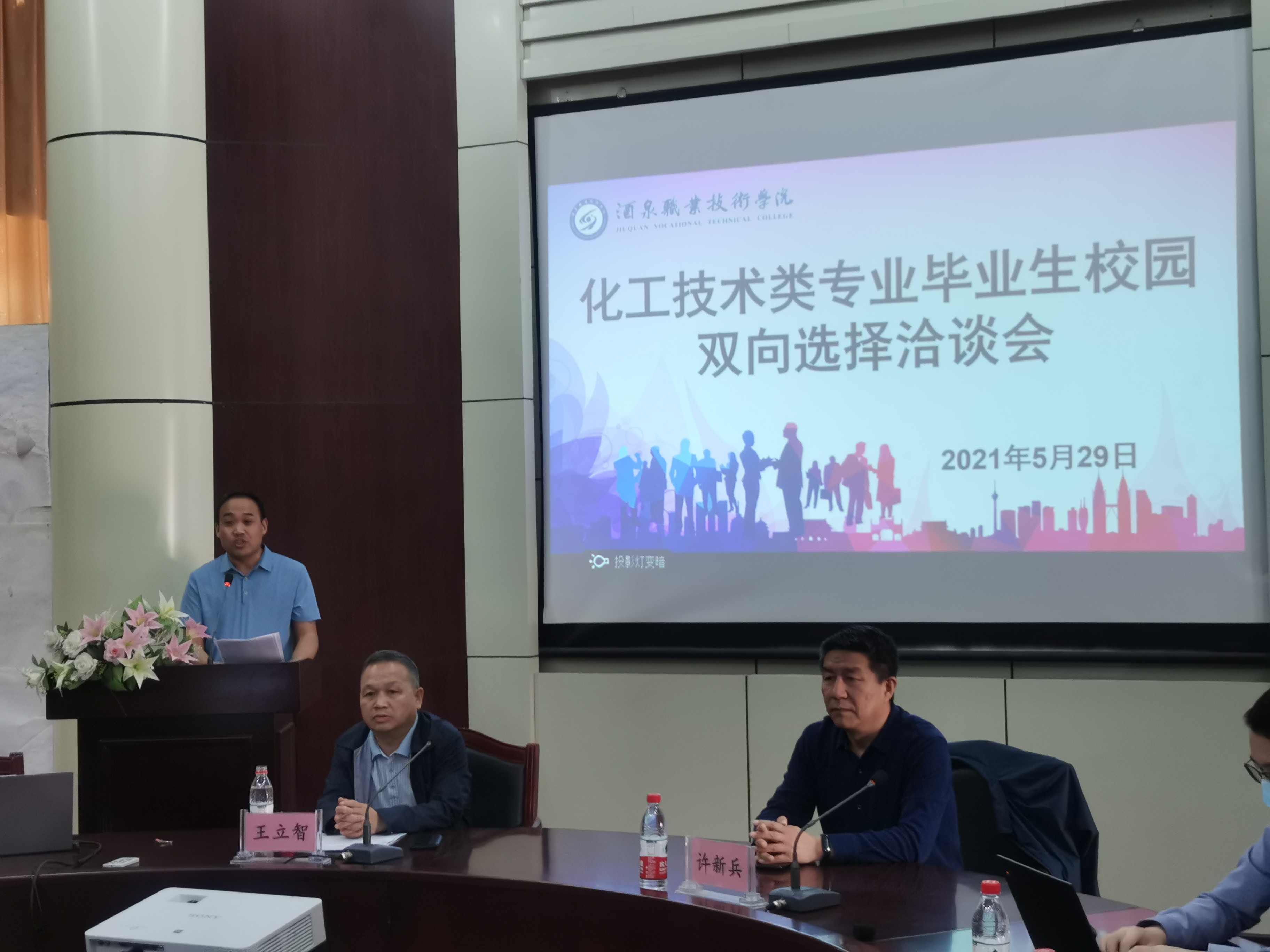 2021年5月29日,酒泉职业技术学院化工学院2021年化工技术类专场校园双选会在逸夫楼门前成功举办。上午8点30分,双选会开幕式在逸夫报告厅准时举行,学校党委委员、副校长王立智同志出席会议并代表学校发表致辞,他对参会来宾表示热烈欢迎及感谢,并指出就业双选会是一个优良平台,在帮助企业吸纳优秀毕业生、推进企业发展的同时,也有利于毕业生顺利就业,实现人生价值。