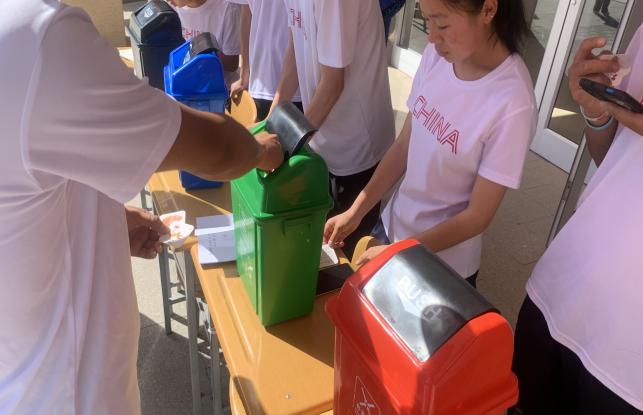 首先,学生代表付康向全校大学生提出“人与自然和谐共生”的倡议,号召大家树立主人翁意识,积极参与校园环境日活动,从我做起,从身边事做起;随后开展了模拟垃圾分类活动,将生活垃圾进行正确分类;最后所有成员在校园里游行宣传,实地进行垃圾分类活动。