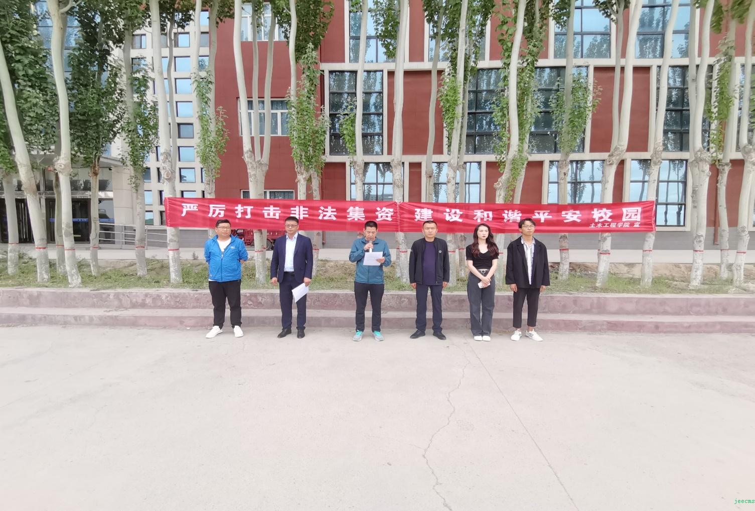 2021年6月18日下午5点土木工程学院在工科实训场地举行了防范非法集资宣传活动。学院相关领导、团委书记、辅导员老师,以及19、20级学生代表参加了本次活动。