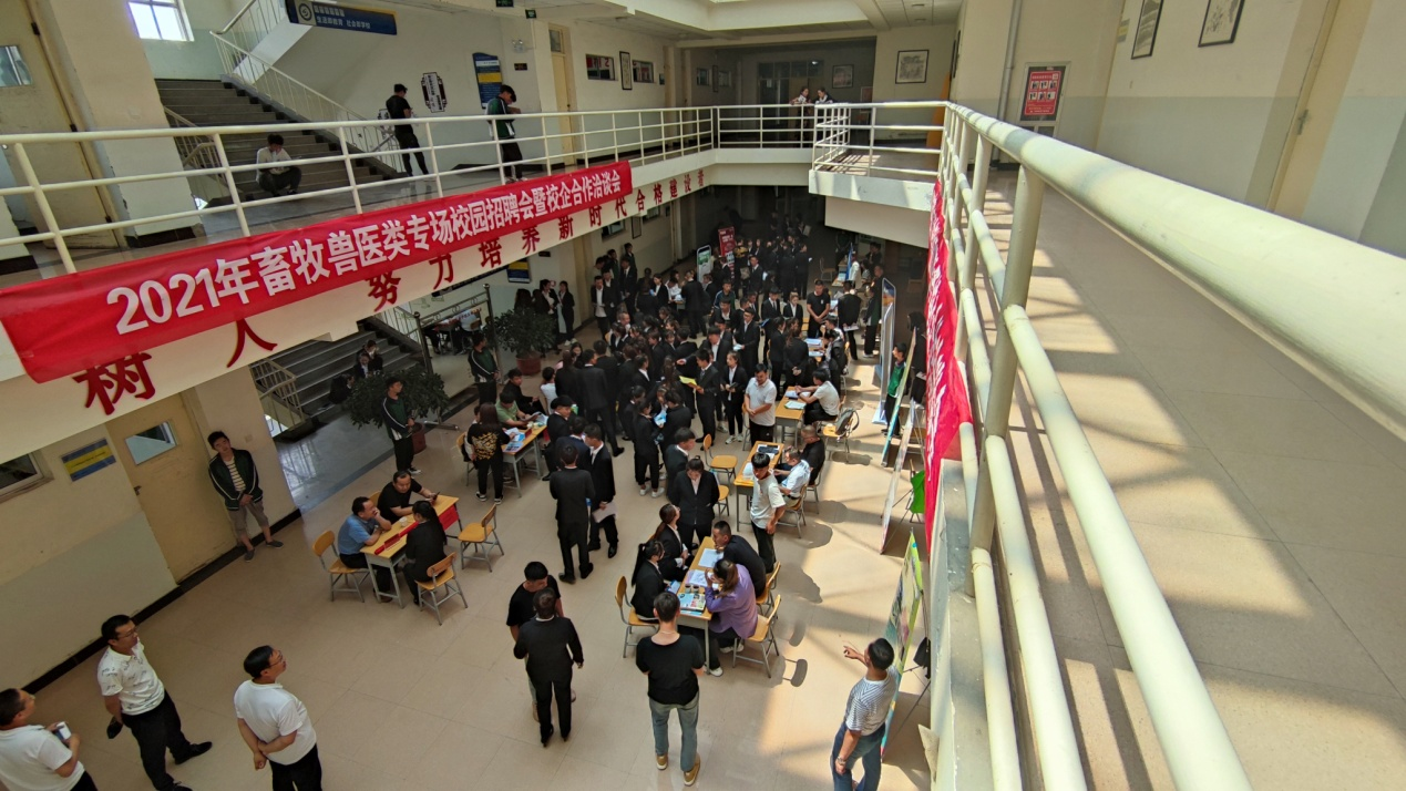 为提高生物工程学院畜牧兽医类专业毕业生就业质量,实现优质就业,解决学生的就业难题,实现高校与企业的良性互动,形成实习、就业的紧密链接,生物工程学院学院于6月23-24日举办了2021年畜牧兽医类专场校园招聘暨专业建设研讨会,本次招聘会共遴选邀请中粮家佳康(张北)有限公司、天津农垦康嘉生态养殖有限公司、天津嘉立荷牧业集团有限公司、内蒙古优然牧业有限责任公司、阜阳天邦食品有限公司、新疆泰昆集团股份责任公司、新瑞鹏宠物医疗集团有限公司、广东海大集团股份有限公司、甘肃大北农农牧科技有限责任公司、宁夏晓鸣农牧股份有限公司、甘肃前进牧业科技有限责任公司等14家企业来校,在进行企业推介的同时,向2022届畜牧类毕业生提供养殖技术人员、生产储备干部、繁育员、保健员、兽医师助理、美容师助理等岗位的400多个就业机会。