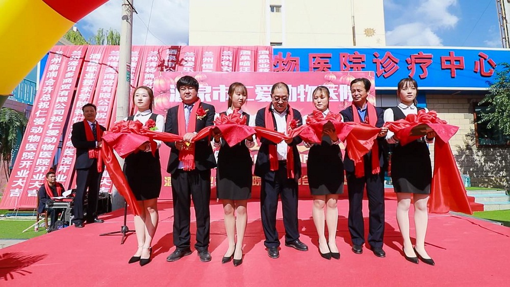 在嘉宾热烈的掌声中,许军、焦少权、赵文昌共同剪彩,宣布酒泉市仁爱动物医院诊疗中心、酒泉职业技术学院产教融合实训基地盛大开业,扬帆起航。