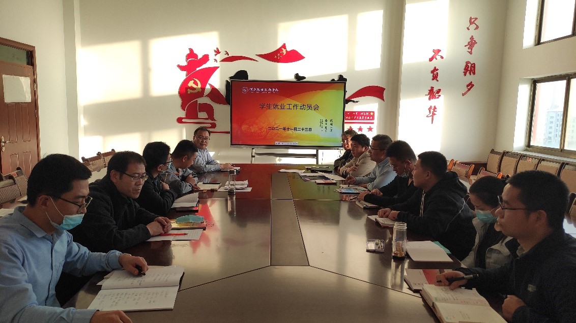 为深入学习贯彻党的十九届六中全会精神和教育部关于做好2022届全国普通高校毕业生就业创业工作会议精神,11月23日下午,机电工程学院在行知楼710会议室召开2022届毕业生就业工作动员会。会议由副院长赵国鑫主持,支部书记、院长裴兴林,党支部副书记李建春、实习就业干事及2019级班主任参加会议。