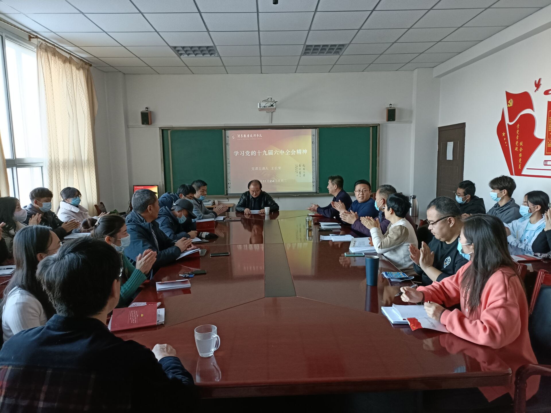 为深入学习贯彻党的十九届六中全会精神,化工学院党支部于11月24日下午在逸夫楼A213会议室特邀请学校党委委员、副校长王长荣教授做了“学习党的十九届六中全会精神”专题党课,化工学院全体教师和学生入党积极分子聆听了讲座。