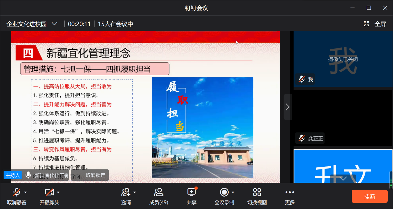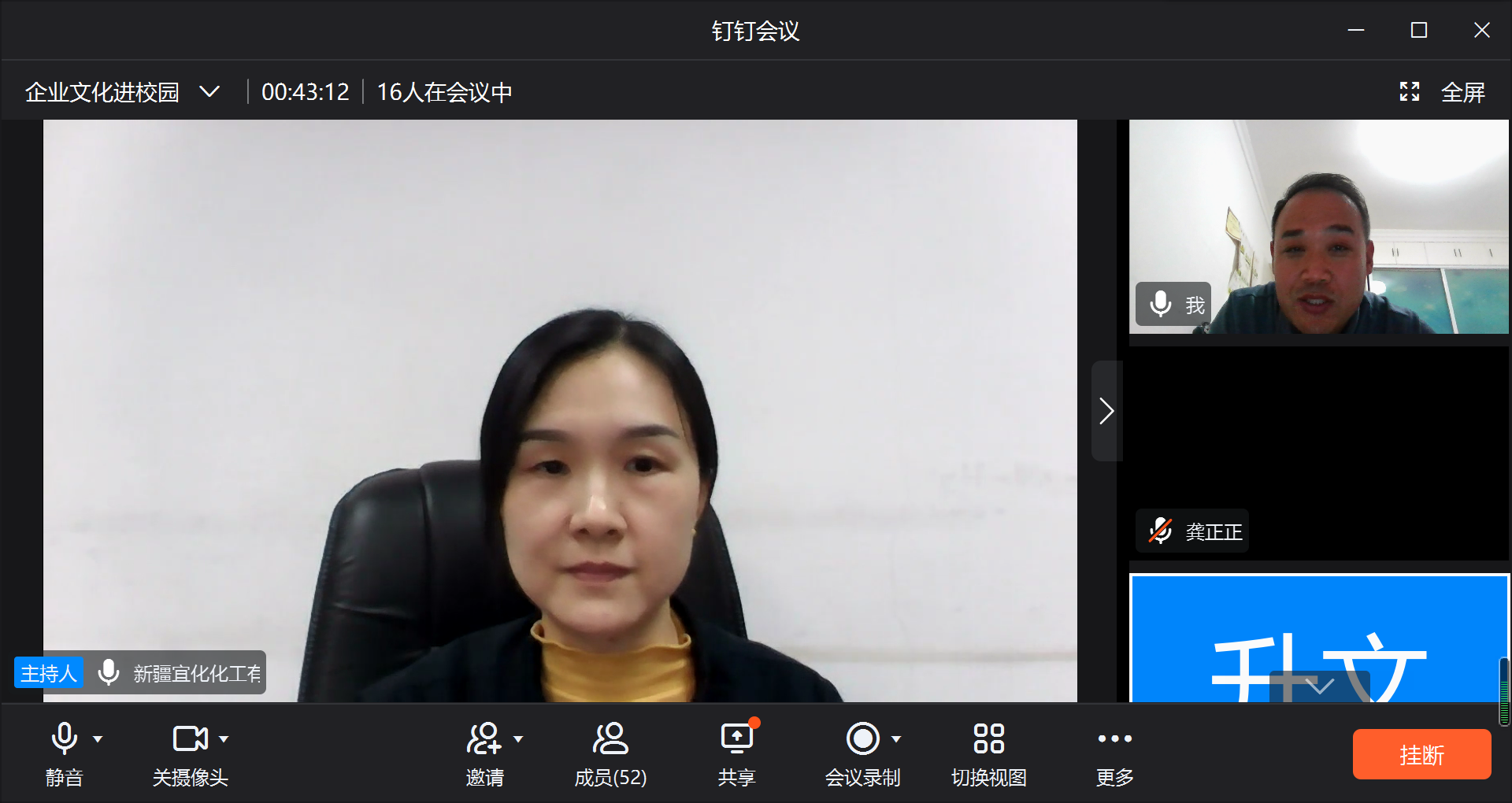 12月2日下午,化工学院通过钉钉会议举办线上企业文化和产业发展专题讲座。会议由副院长白锦川主持,新疆宜化订单班学生和部分师生参加。