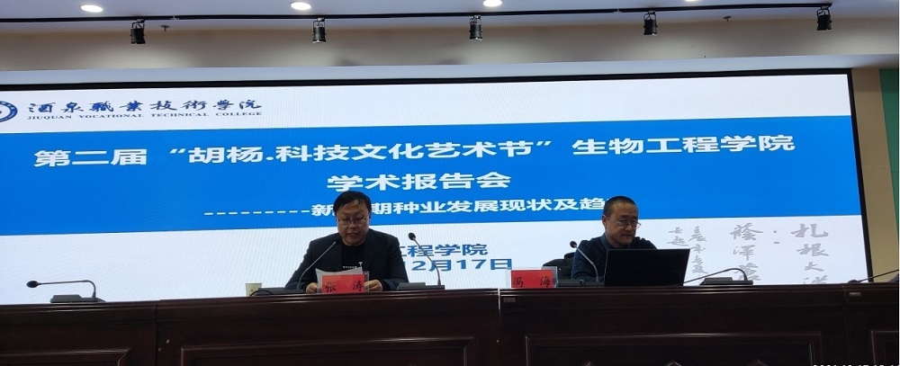 根据学校《关于组织开展第二届“胡杨•科技文化艺术节”活动的通知》,2021年12月17日下午在图书馆四楼会议室进行了生物工程学院第二场学术报告会。报告会由种子生产与经营专业校外带头人、甘肃九洋农业发展有限公司董事长冯海做了题为“新时期种业发展现状及趋势”的主旨报告。冯海先生从种业是永远的朝阳产业、我国种业发展的历程及规模、从种业的几个板块看种业、种业所面临的行业特征、种子科研的现状、中国种业市场发展趋势等方面做了精彩分享。参加今天报告会的有生物工程学院副院长张涛、农业技术类部分专业教师,种子生产与经营、现代农业技术、园艺技术专业学生共计230余人。