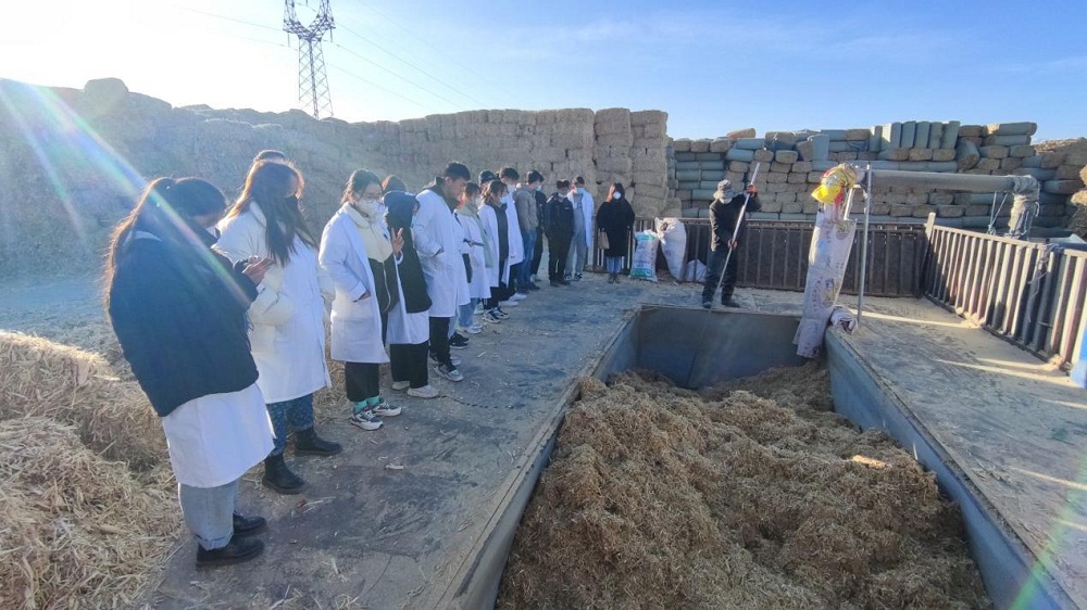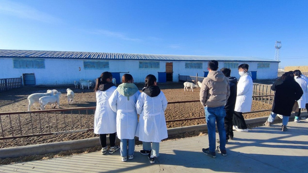 在铭鑫羊业酒泉公司,企业就规模化养殖、纯种繁育、发情管理、饲料调制等技术向同学们做了详细的讲解和示范。