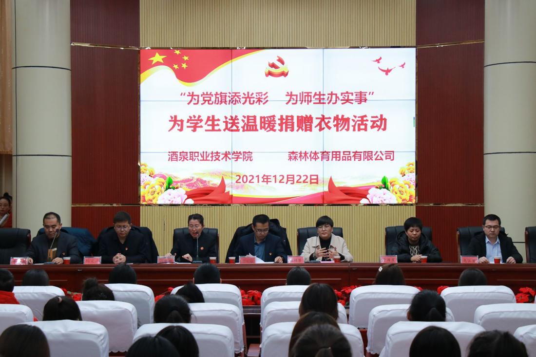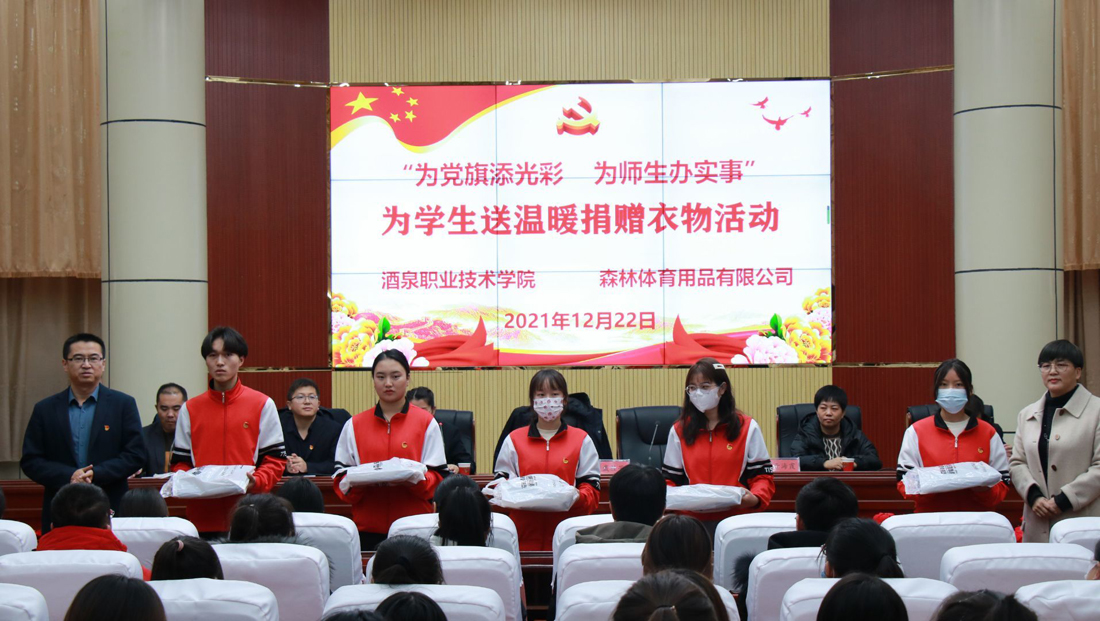 为深入开展党史学习教育,落实“为党旗添光彩、为师生办实事”实践活动。医学院党支部携手森林体育用品有限公司开展“送温暖,进校园”为困难学生捐赠御寒衣物活动。