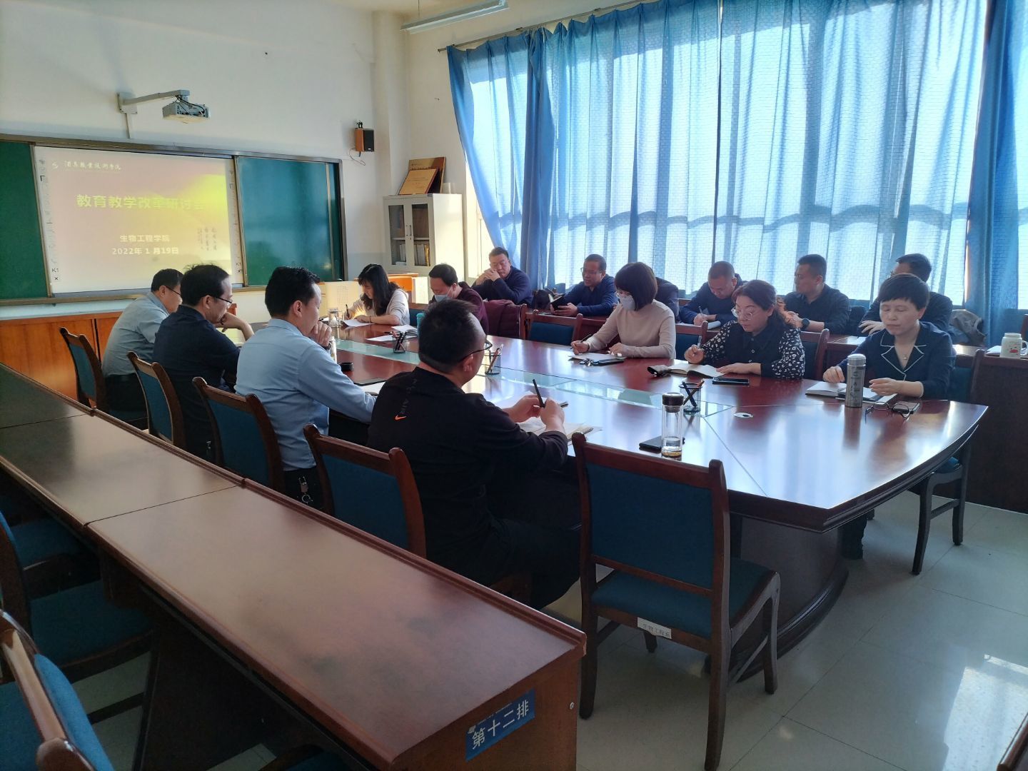 2022年1月19日下午生物工程学院在逸夫楼A座315会议室召开了教育教学改革研讨会,学院领导班子全体成员及部分教师代表参加了本次会议。会议由学院党支部书记、院长武兴宝主持。