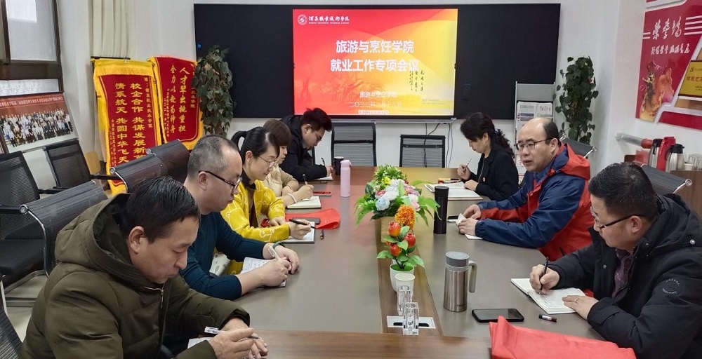2月18日上午,旅游与烹饪学院组织召开了2022年就业工作专项会议。院长杨洁及班子成员、系主任、毕业班班主任、就业干事和辅导员参加了会议,会议由院长杨洁主持。