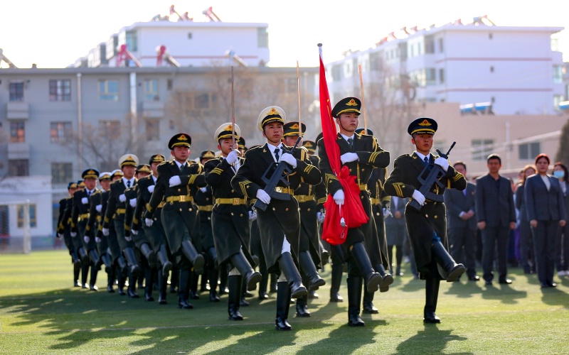 近年来,胡杨国旗护卫队不断强化社团文化建设,在完成校内重大活动和每周一升旗任务的基础上,积极开展校外交流展示及志愿服务活动,累计为肃州区多所中小学开展军训和爱国主义教育32次,充分展现了我校学生社团朝气蓬勃和胡杨学子昂扬向上的精神面貌。