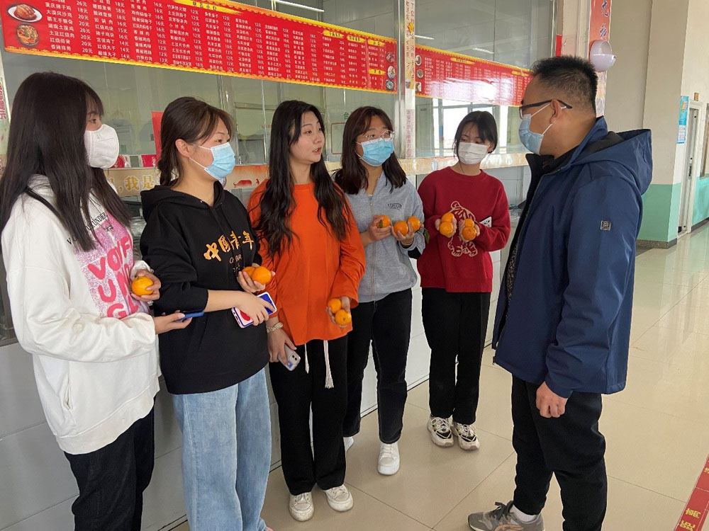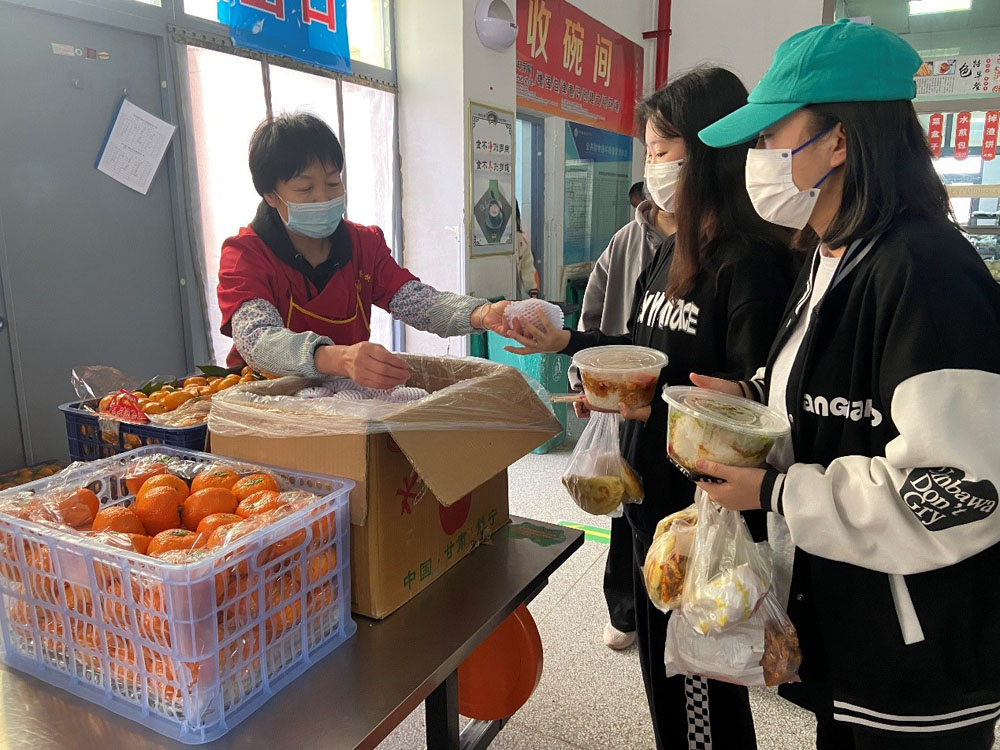 院系动态 > 正文当前,国内疫情有所好转,但防控形势依然严峻,为丰富疫情期间在校学生的日常生活,营造温暖氛围,后勤管理处学生餐厅积极开展“献爱心送水果”活动,凝心聚力为学生健康生活保驾护航,调节校园闭环管理中同学们的心情,让莘莘学子们以积极的心态面对疫情,使他们能够在远离家乡的校园里感受温暖和快乐。