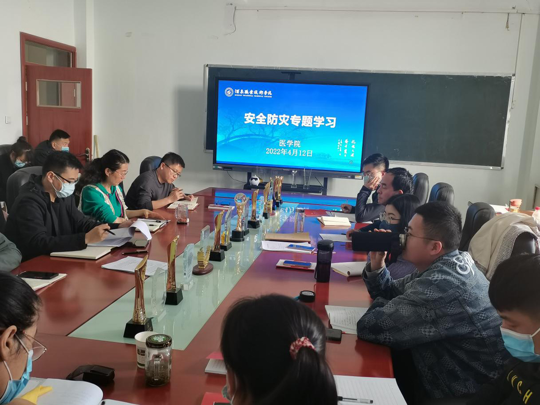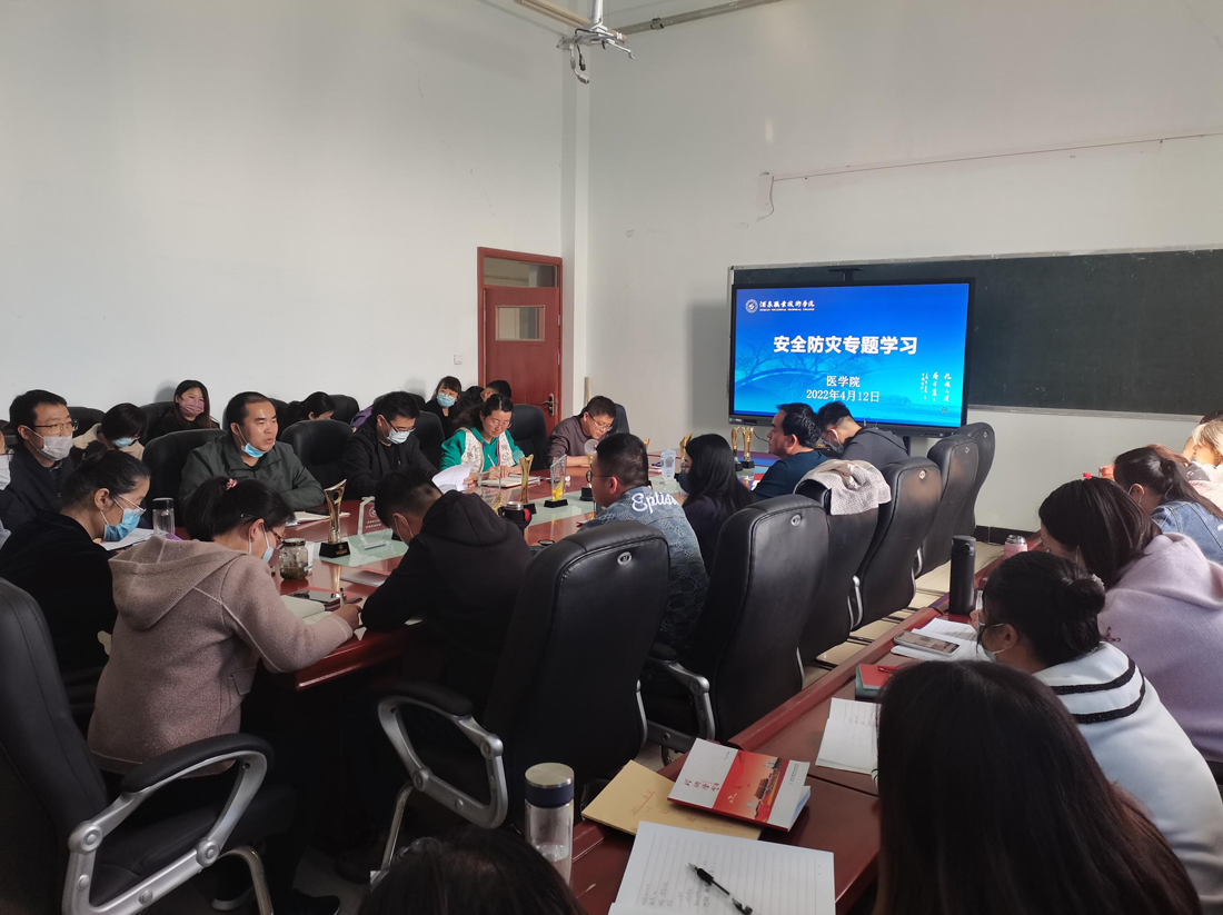 为进一步提高学院师生应对各类突发灾害的能力,不断增强自救自护安全意识,医学院于4月12日下午组织全体教师召开了“提高安全意识,筑牢生命防线”专题学习会议。