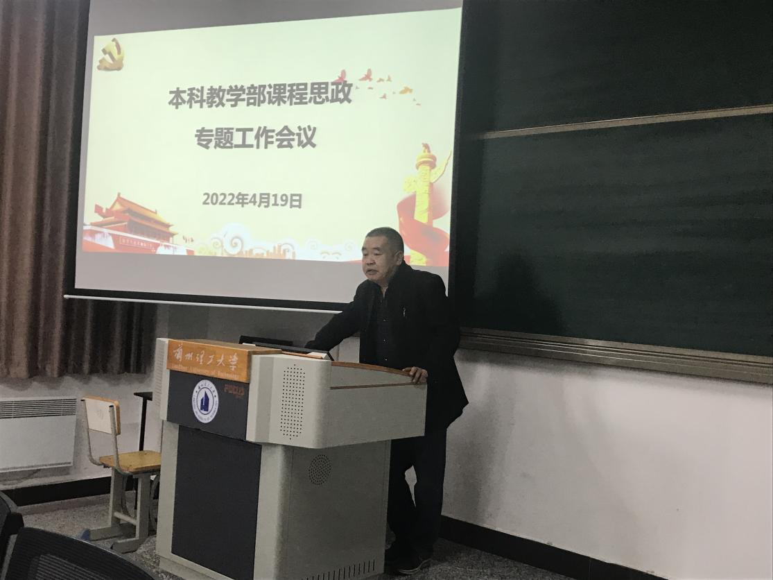 院系动态 > 正文为全面贯彻落实《高等学校课程思政建设指导纲要》、《甘肃省教育厅深入推进高校课程思政建设工作方案》、《酒泉职业技术学院深入推进课程思政建设实施方案》等文件精神,推进学校课程思政建设,提升立德树人成效,更好的发挥教师队伍主力军,课堂教学主渠道作用,2022年4月19日下午,本科教学部召开课程思政专题工作会议。本科教学部全体教师参加了此次活动。