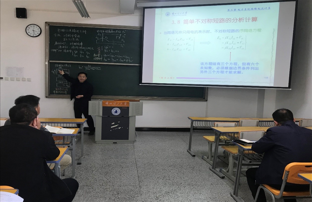 活动中张明光教授选取《电力工程》中的简单不对称短路的分析计算内容作了精彩的课堂教学展示,内容熟练,重点突出,图文并茂,讲授内容与PPT有机结合。课程讲解结束后,参加活动的教师们与张教授进行了深入的讨论和交流,发言积极,气氛热烈。教师们一致认为,这种活动对促进教师之间的相互交流学习、提高教师课堂教学能力,营造良好的教学氛围十分有益。