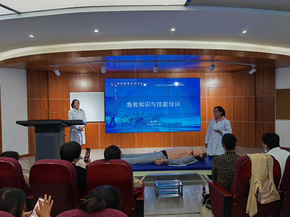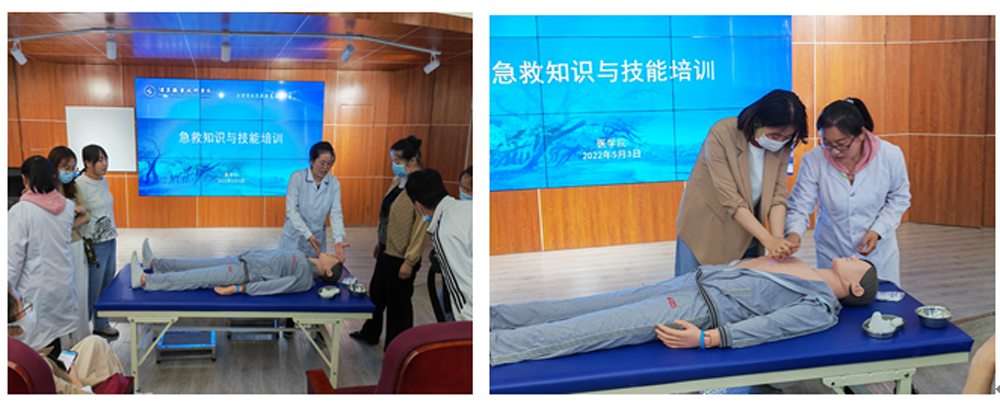 为全面推进首批全国学校急救教育试点工作,发挥我校医学专业职能,提高我院教职工的应急救护能力,营造“人人学急救,个个会急救”的良好氛围,进一步普及急救知识和技能,2022年5月3日下午,医学院组织全体教职工开展了首期心肺复苏急救师资培训。