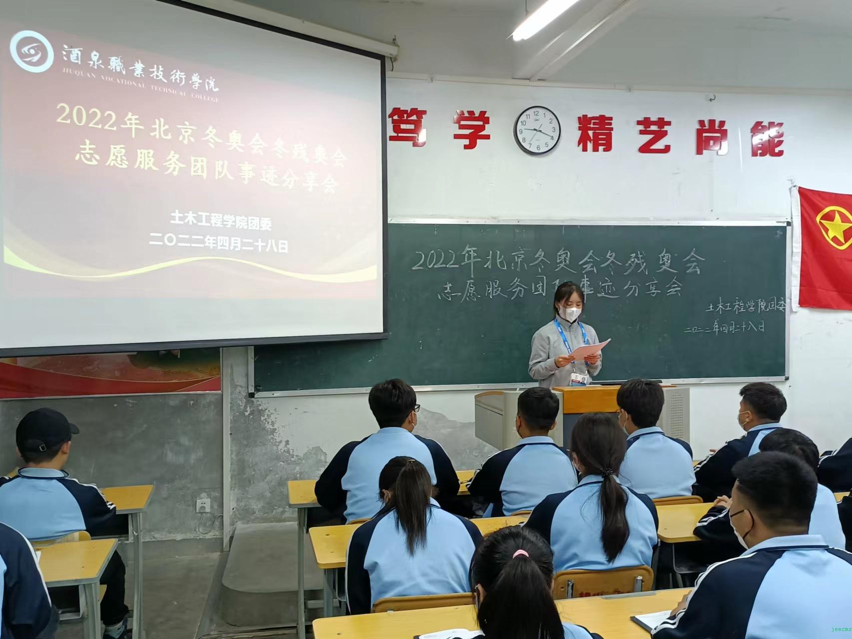 为深入学习贯彻习近平总书记在北京冬奥会、冬残奥会总结表彰大会上的重要讲话精神。2022年4月28日,土木工程学院团委在行知楼108举行2022年北京冬奥会冬残奥会志愿服务团队事迹分享会,重温冬奥时刻,吸取青春力量。
