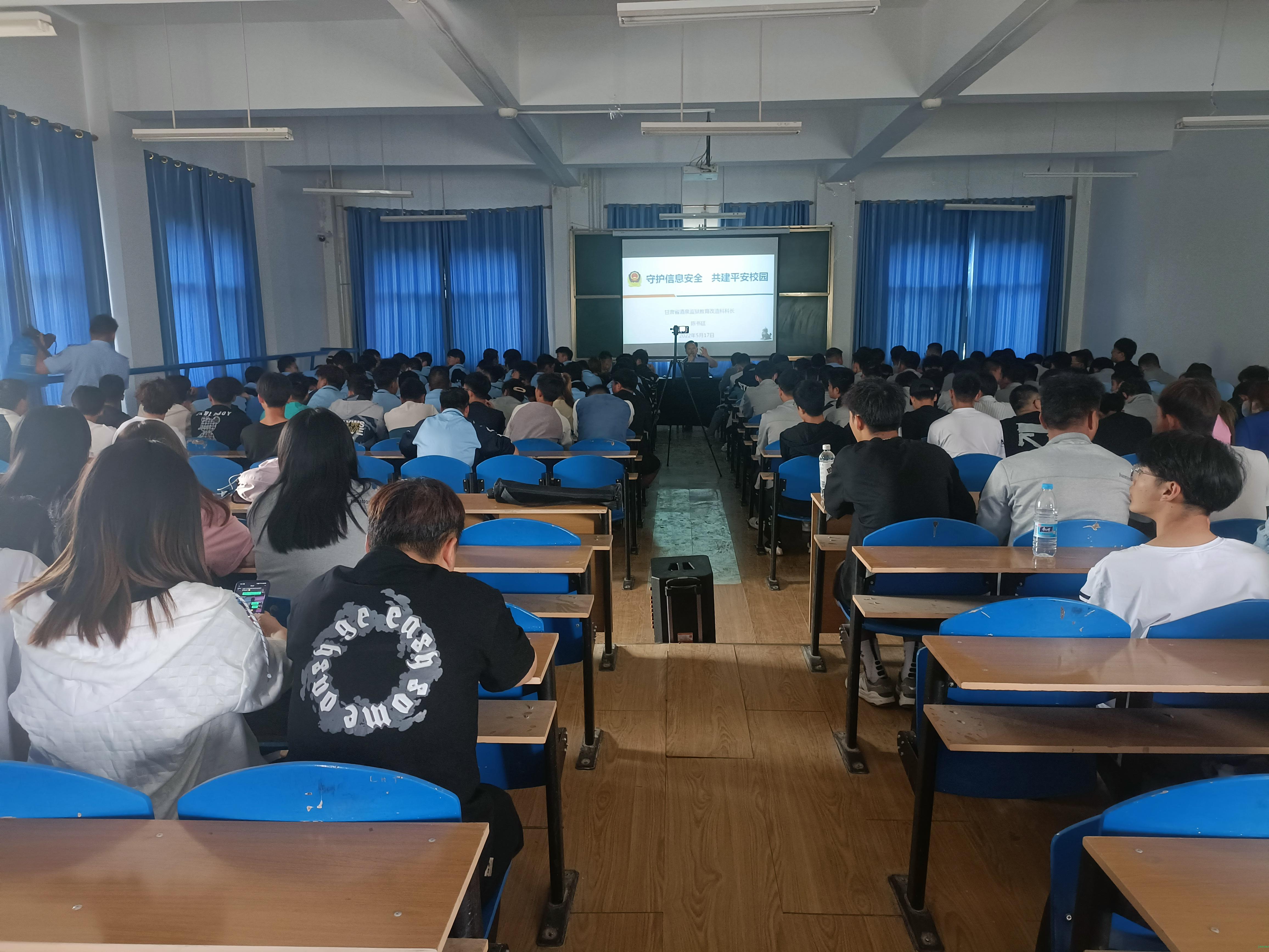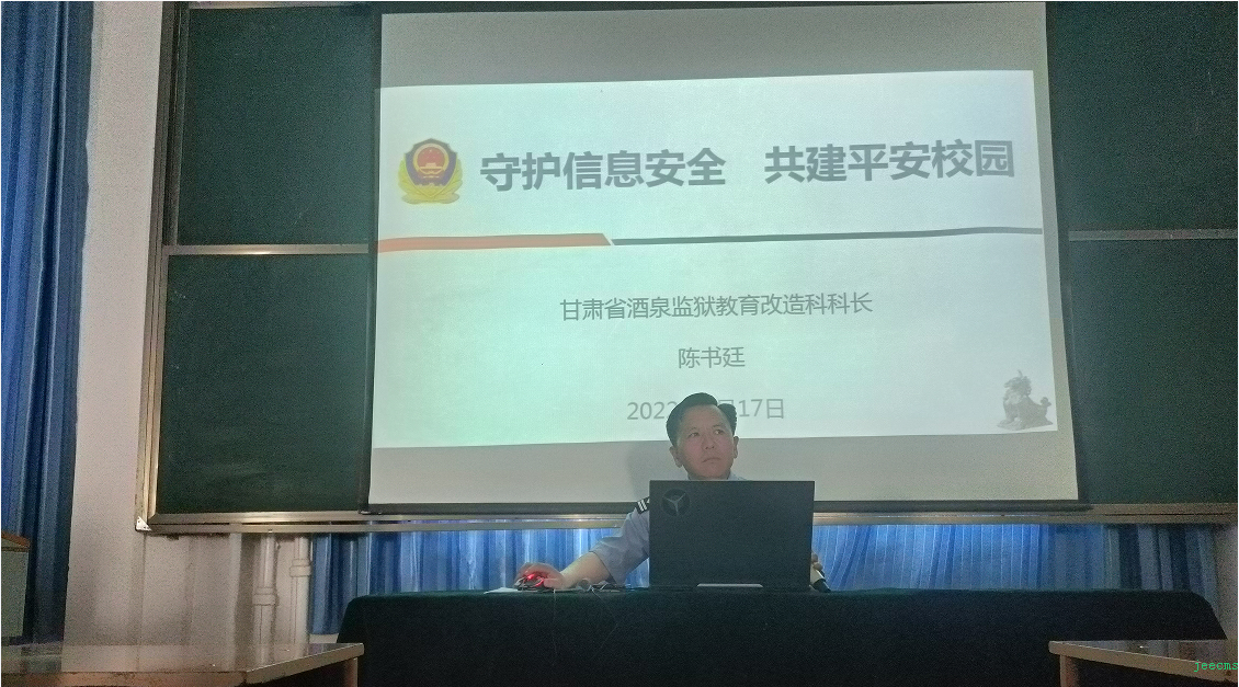 为筑牢校园网络安全屏障,提升学生的网络安全意识和技能,创建平安校园,助力学生健康快乐成长,世界电信日(5月17日)当天,学院法治辅导员酒泉监狱教育改造科科长陈书廷同志来校开展了以“守护网络安全 共建平安校园”为主题的报告。