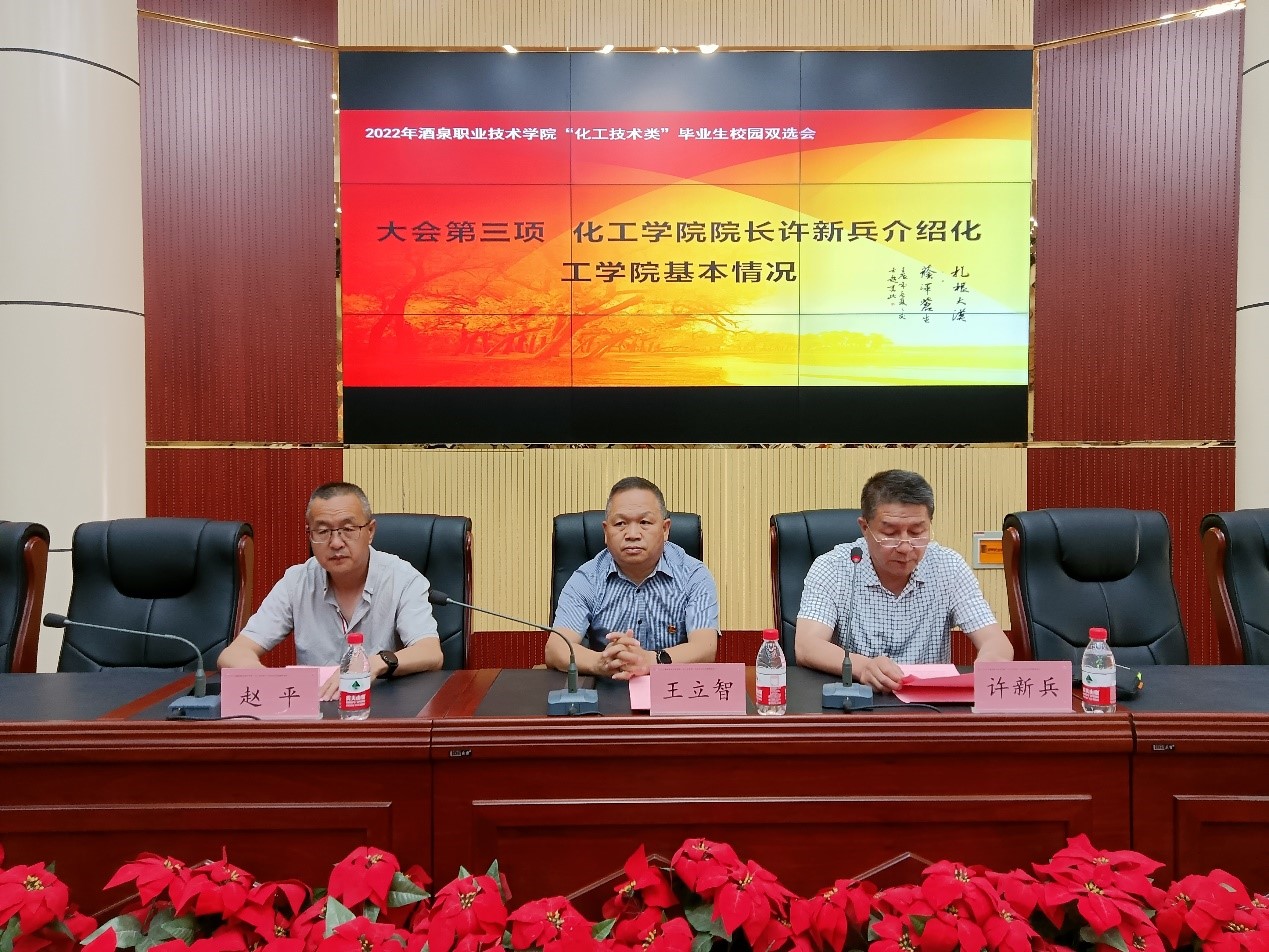 6月11日上午,学校“化工技术类”专业双选会在逸夫楼成功举办。本次双选会采用线上线下相结合的方式开展,来自全国各地的45家企业参加了招聘。学校党委委员、副校长王立智、招生就业处处长赵平、化工学院党支部书记、院长许新兵出席会议,会议由化工学院副院长白锦川主持,化工学院2023届毕业生参加本次双选会。