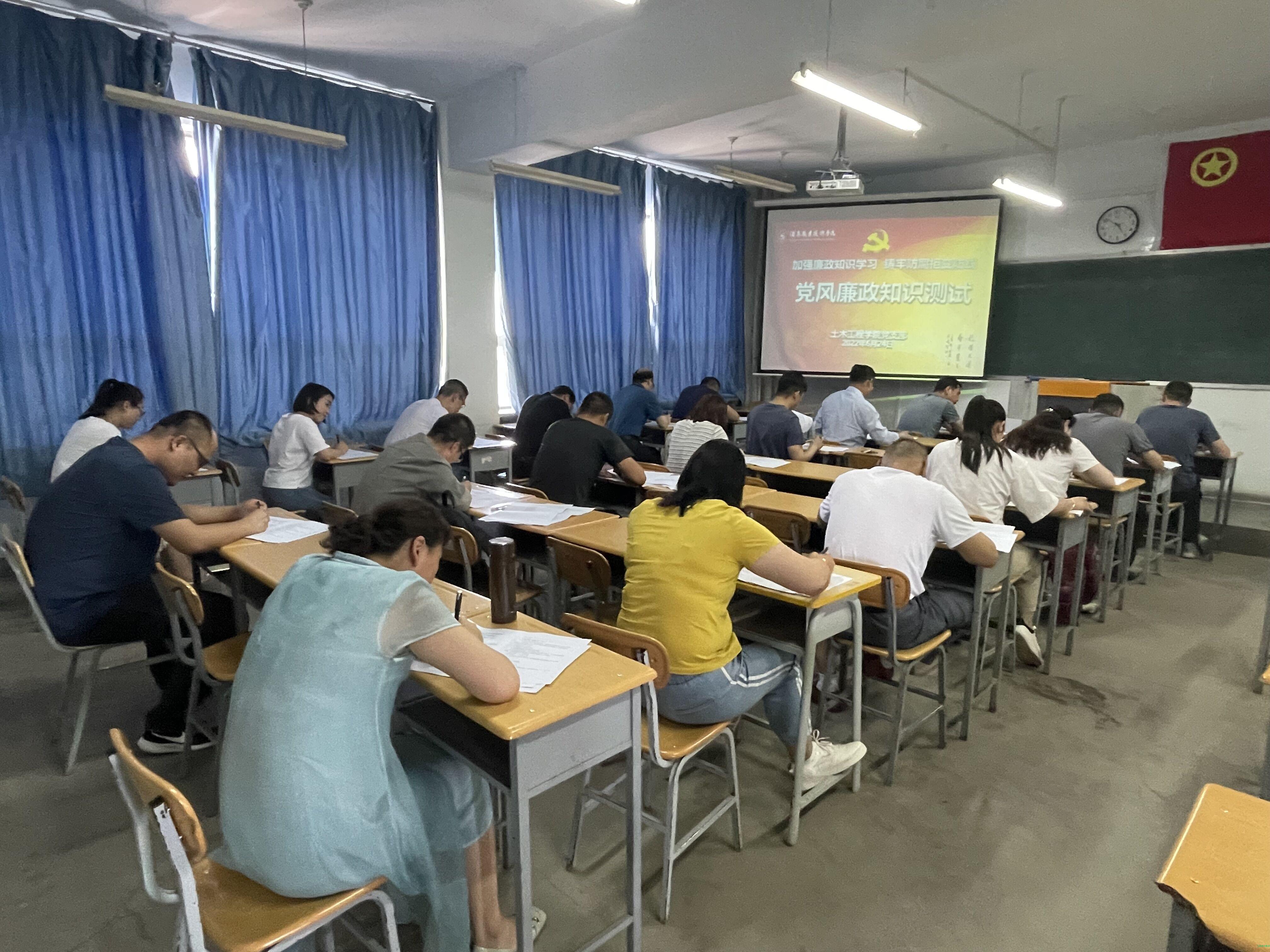 根据酒职纪字[2022]12号《关于开展2022年党风廉政建设知识测试的通知》精神,6月24日,土木工程学院组织全体党员在行知楼503教室举行了2022年党风廉政知识测试。