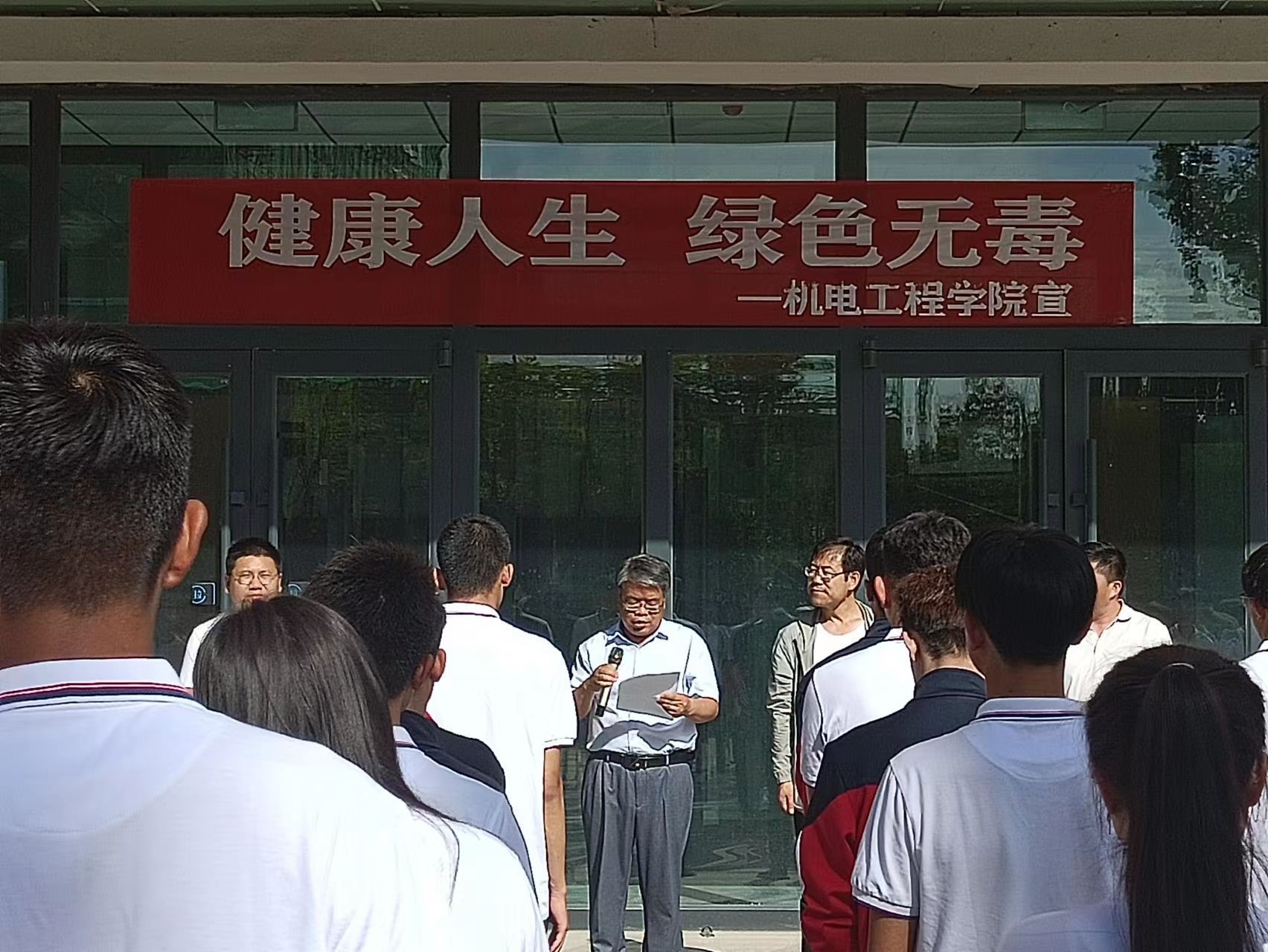 在第35个国际禁毒日来临之际,为充分调动师生禁毒宣传教育的积极性,进一步提升师生的自我保护意识和防护能力。6月24日下午,机电工程学院在格物楼前举办“健康人生、绿色无毒”禁毒宣传教育及签名活动。活动由副院长赵国鑫主持,党支部副书记李建春及部分师生代表参加此次活动。