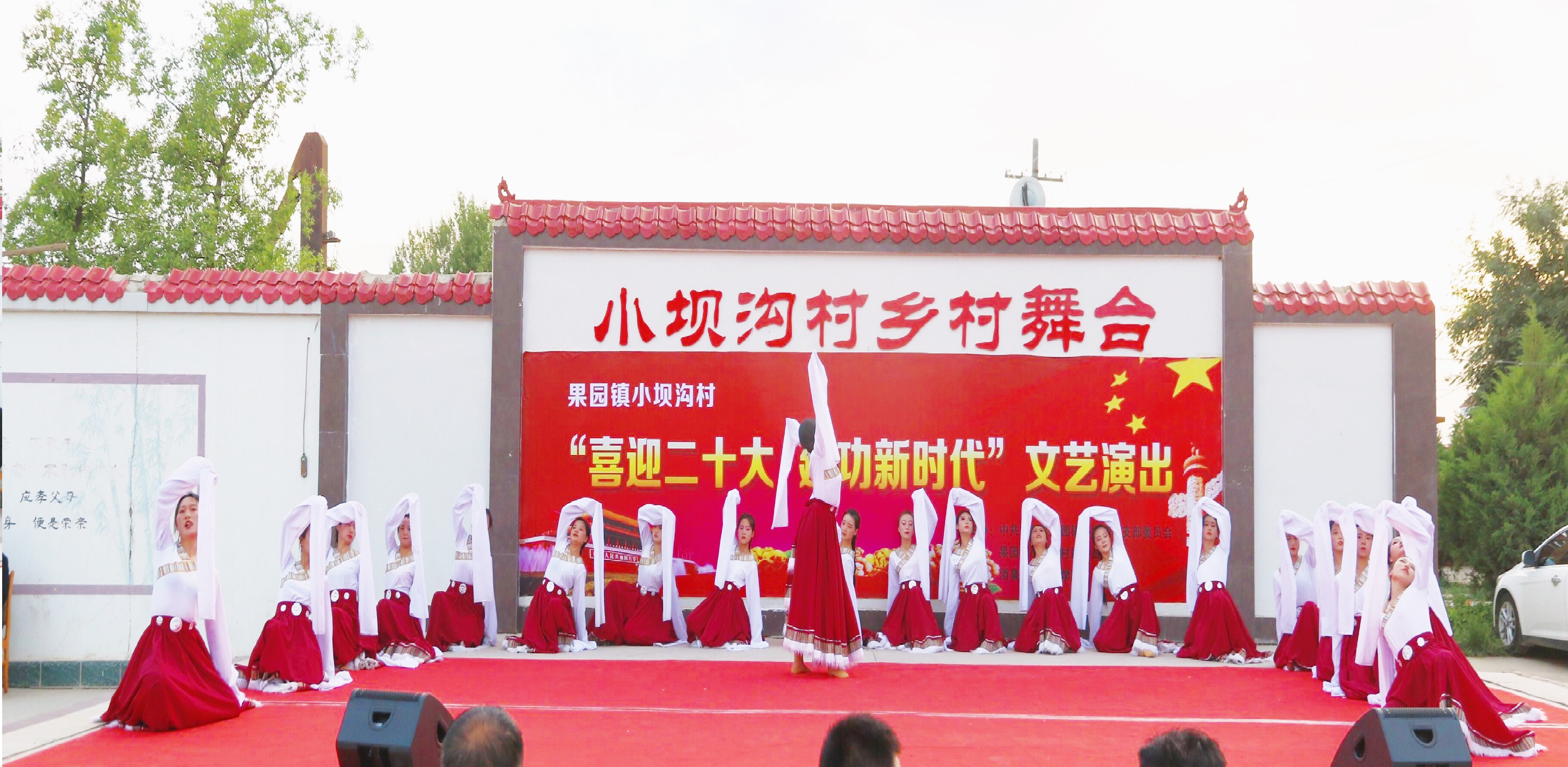 为服务乡村文化振兴,助力乡村振兴战略,2022年6月24日傍晚,教育与艺术学院赴肃州区果园镇小坝沟村开展“送文艺下乡”演出活动,果园镇党委副书记殷利、小坝沟村党支部书记李金参加了活动并致辞,小坝沟村及附近全体居民观看了演出。