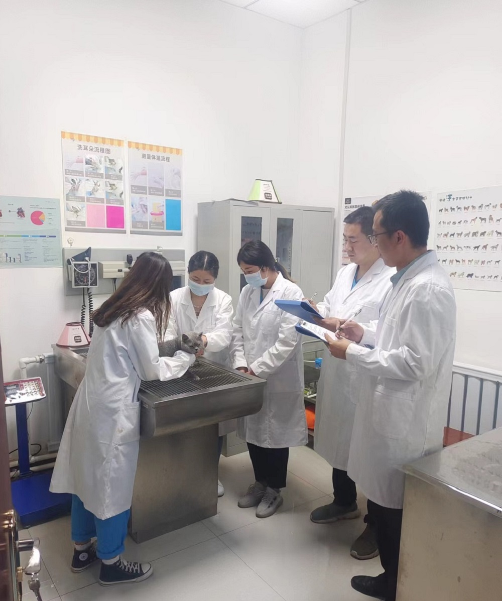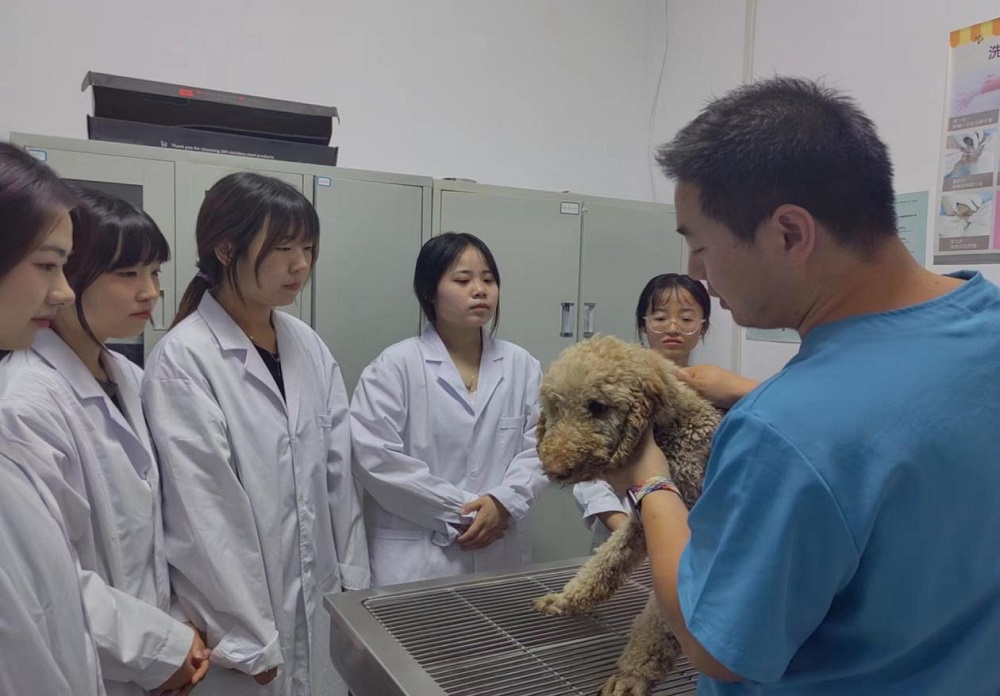 根据《2021-2022学年第二学期2021级动物医学专业产教融合教学安排》,6月18日,生物工程学院2021级动物医学专业将课堂搬进了产教融合实践教学基地---酒泉仁爱动物医院,进行为期三周的医院全真情境教学。按照课程内容课前翻转、课中训练考核、课后实践强化的教学训练要求,以动物医院为主,突出医院医师对学生实践技能指导提升的整体思路,探索动物医学专业产教融合课程教学改革的新路径。