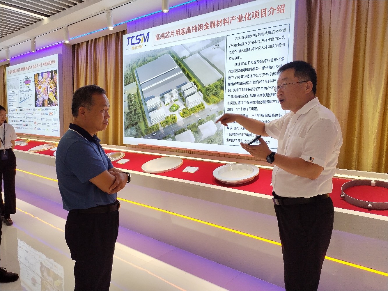 王校长一行在同创(丽水)特种材料有限公司副总经理甘英的陪同下,参观了超高纯钽溅射靶材生产车间,并了解生产工艺情况和岗位需求。双方围绕用工需求、学生实习就业、政府人才引进政策等方面展开深入交流,取得了广泛的合作基础。