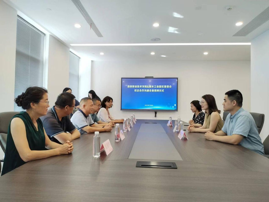 在莲都区丽水工业园管委会,王立智副院长介绍了学校总体发展,医学院副院长段国萍对专业建设,师资队伍,实训条件,毕业生就业状况做了详细介绍,洽谈酒泉职业技术学院和丽水工业园区管委会合作事项并举行酒泉职业技术学院实习基地授牌仪式。