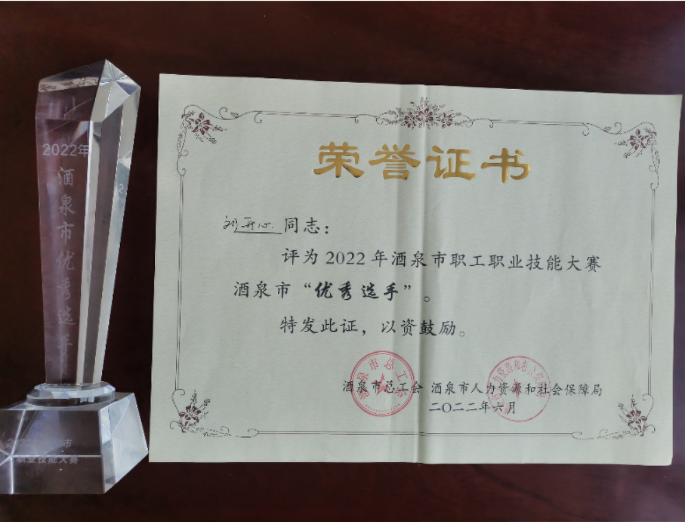 近日,酒泉市总工会公布了2022年酒泉市职工职业技能大赛比赛成绩,机电工程学院2021级智能焊接技术专业刘开心同学获得焊工比赛第6名,荣获酒泉市“优秀选手”荣誉称号。