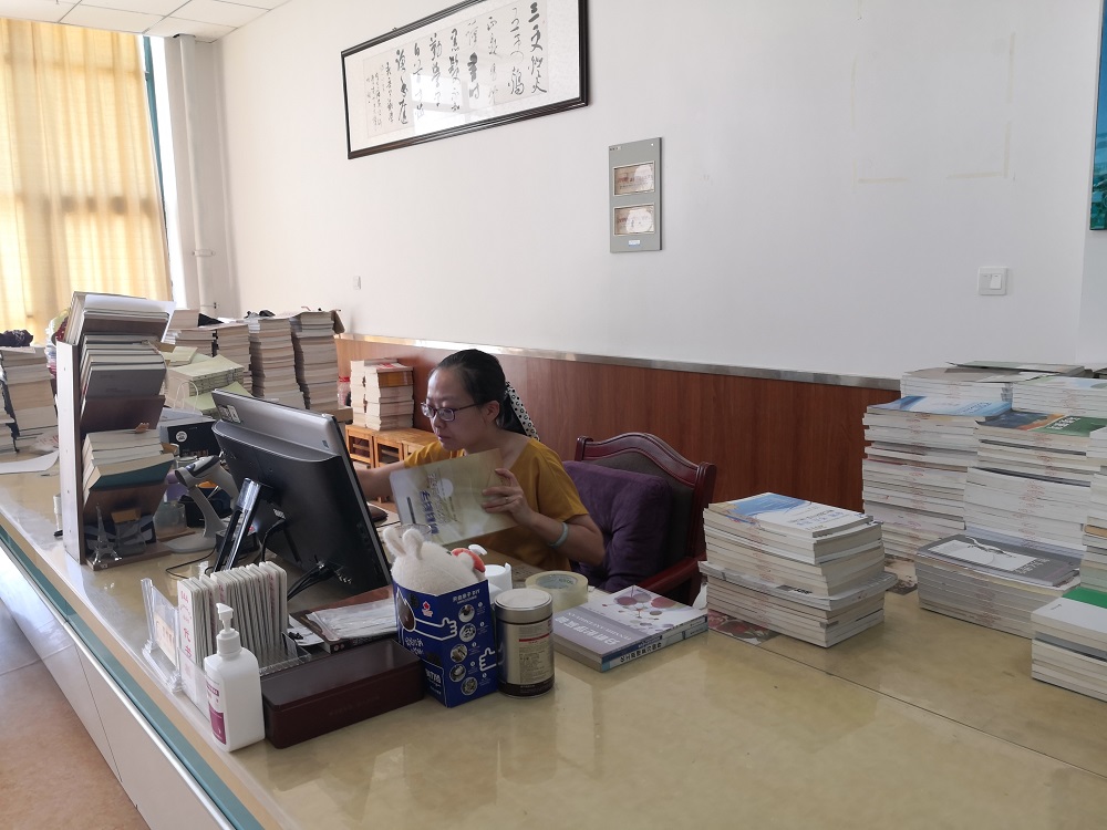 在暑期加班的时间里,全体馆员以认真的工作态度、饱满的工作热情,紧张有序地开展工作。每位馆员除完成图书贴条码、盖章、系统录入等加工任务外,还要在闷热的工作环境下将加工后的图书搬运到各个书库,并按分类将书籍整齐的排放于书架之上。在时间紧,工作强度大的情况下,大家不怕脏不怕累、不计较个人利益,保质保量的完成了繁琐的整架、倒架工作。