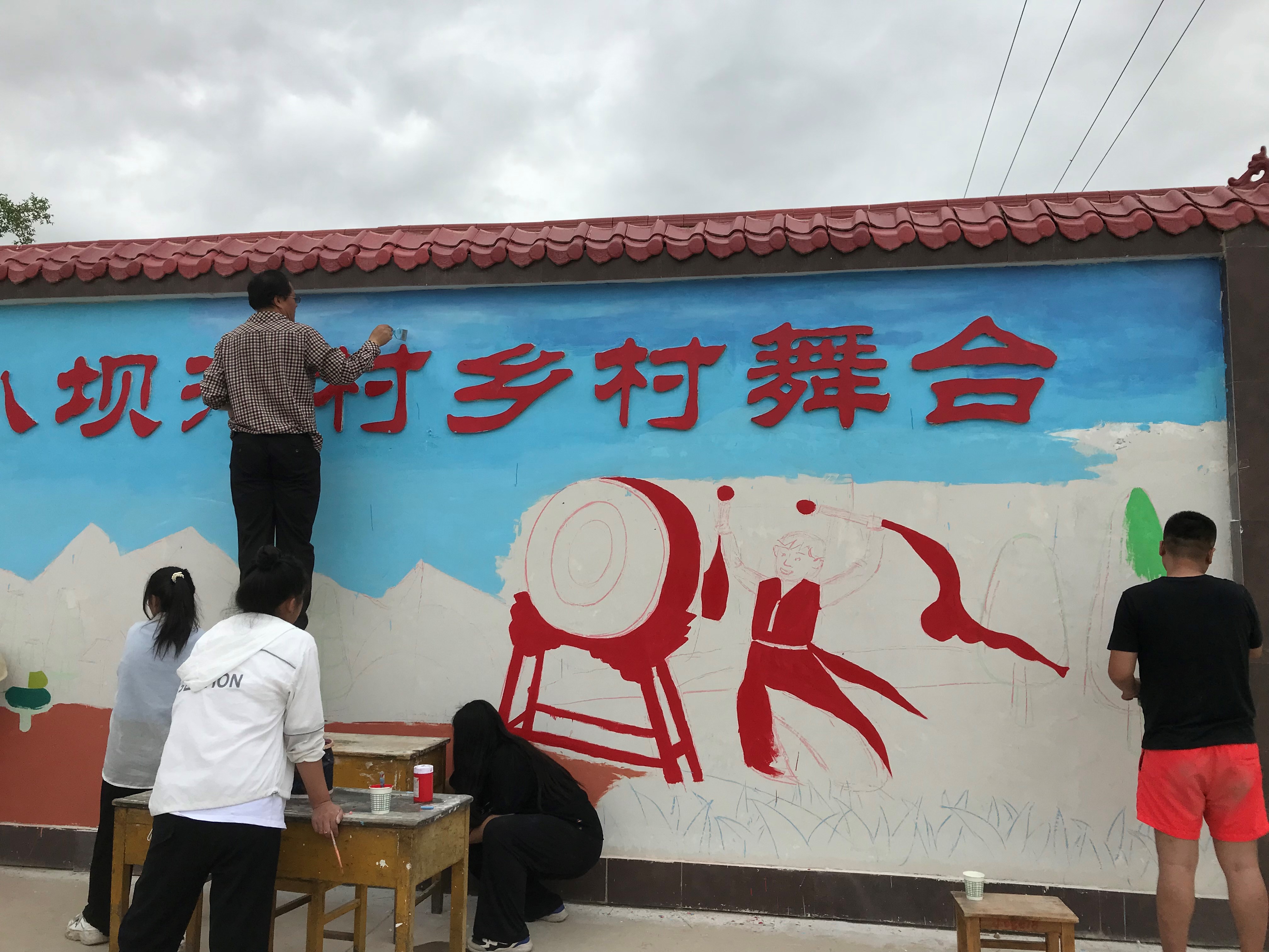 深入田间调研。为更好的助力乡村振兴,将社会实践活动与当地特色文化融合,指导老师带领青年志愿者对小坝沟村进行实地考察调研,深入田间了解乡村需求,针对乡村文化振兴墙绘需求,志愿者分工明确,挖掘文化内涵,确认绘画主题、设计方案、绘画内容等,通过展现小坝沟村和谐民主的美丽乡村,为富民兴陇的乡村文化振兴注入新的活力。