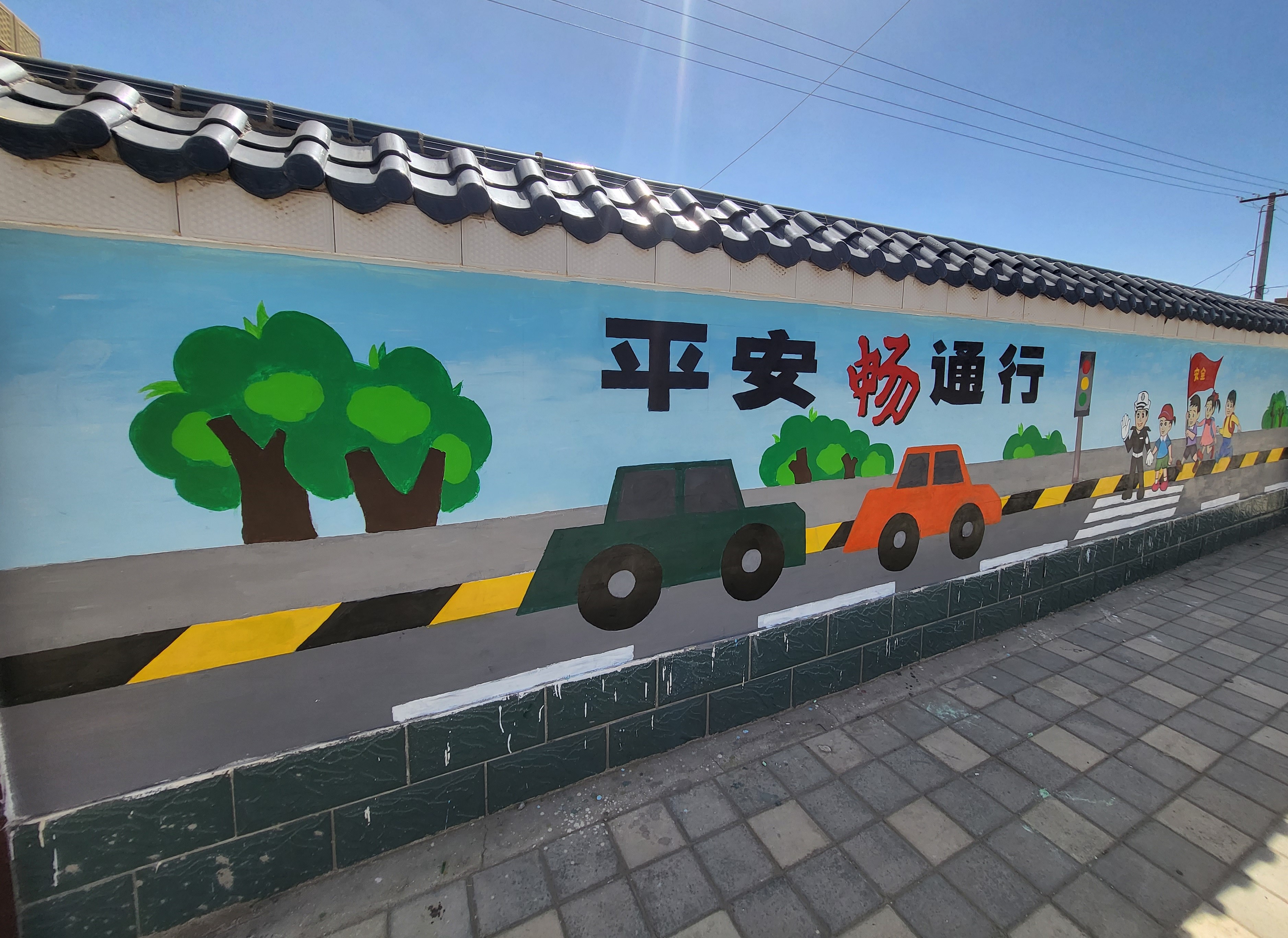 手绘美好远景。一墙一文化,一画一风景,一景一风尚。文化建设是乡村振兴的灵魂,是美丽乡村建设的内在要求,文化墙是弘扬中华传统优秀文化的有效载体。志愿者发挥专业特长以漫画、标语的形式,用灵巧的画笔装点昔日单调陈旧的墙体,“乡村舞台”“平安畅通”“丰收家园”等一幅幅生动活泼、构思巧妙、图文并茂、通俗易懂的墙绘作品将艺术融入乡村文化生活,彰显出新时代乡村文化的时代内涵,潜移默化地促进新时代乡村崇尚新风,积极向上、健康文明的道德风尚。成为传播文明的“小窗口”,美化家园的“活教材”,为肃州区果园镇小坝沟村营造出一番“画中有景,景中有画”的美好景象。