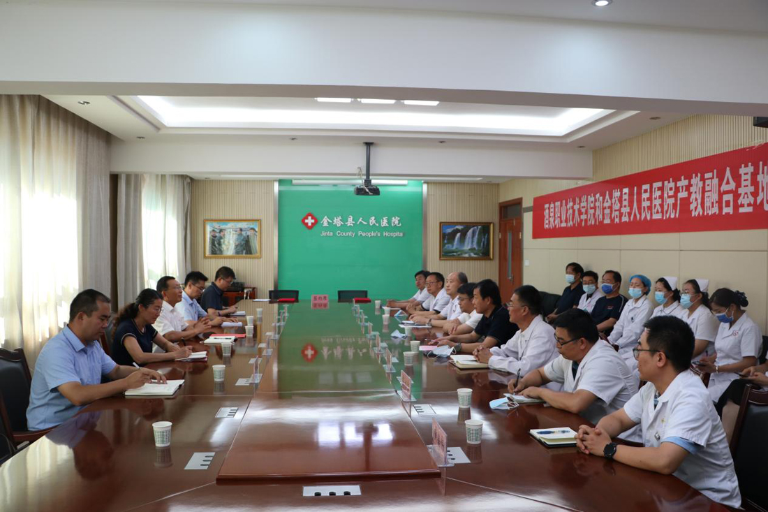 为进一步深化医教协同,不断加强实践教学基地建设,拓宽毕业生就业渠道,7月22日上午学校党委书记、校长易志军,医学院院长范玉敏等一行5人赴金塔县人民医院走访调研。金塔县委常委宣传部部长吕伟,卫健局主任刘治全程陪同并参加调研。