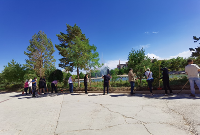 活动中,同志们到经世楼南侧道路出口绿化带,在校园绿化人员的指导下,挖土培垅,铲除杂草,整理绿地环境,为校园添上一抹“亮色”的同时,也将“崇尚劳动、热爱劳动、辛勤劳动、诚实劳动”的劳动精神“种”进每位党员和教职工心中。