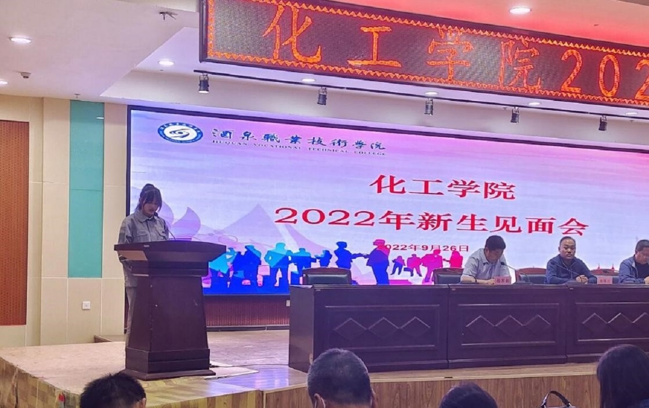 会议在庄严的国歌声中隆重开幕。会议伊始,副院长徐军新代表全院教师对2022级新生的到来表示了热烈欢迎。随后,孔祥波副书记介绍了学校概况、胡杨精神、校训和校风,并详细介绍了化工学院现状,副院长任小娜介绍了化工学院所开设的各专业的情况、学院师资队伍建设、实验实训条件、就业情况等。接着辅导员秦桐老师发言,在为同学们送上祝福与期许的同时,希望能够给予同学们更多的指导,帮助同学们在大学期间明确目标,快乐成长。在老生代表和新生的发言中,老生代表刘伟同学向全体师生介绍了自己学习和生活的各方面情况,分享了自身的学习体验。新生代表王映翕同学发言谈了自己对大学生活的向往以及对以后人生的规划。在新生见面会的最后,院长白锦川做了总结讲话。他首先表达了对大家的欢迎,然后和同学们分享了自己对大学及大学生活的理解,希望同学们,大学期间刻苦学习,努力提高自己的专业技能,争做“时代铁人”,不负青春年华。