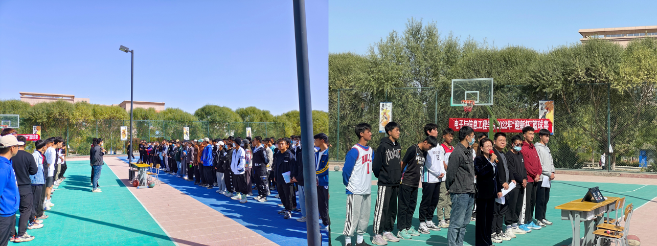 为促进学生相互了解、增进友谊,营造积极拼搏、团结向上的竞争氛围,调动广大同学参与体育运动的积极性,充分展现学生热情奔放的青春气息,增强同学们的集体荣誉感,引导同学们走下网络、走出宿舍、走向操场,电子与信息工程学院在2022年10月6日在工科实训楼前篮球场举行了自成立以来首届“热血青春、以球会友”电子与信息工程学院“迎新杯”球类赛项的开幕式及第一场篮球比赛对决,以此迎接的新学期、迎接新同学到来!电子与信息工程学院主管学生工作副院长王迎春院长、学生工作办公室刘凯老师和班主任王玉祥老师前来开幕式观看第一场比赛。
